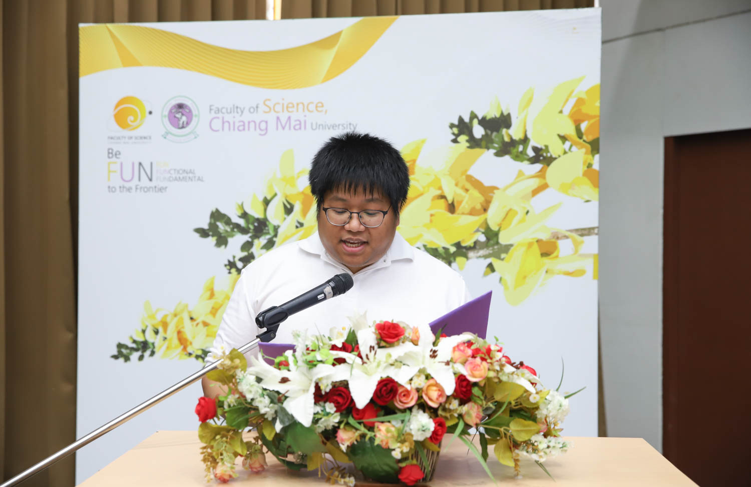 วันที่ 27 เมษายน 2569 คณะวิทยาศาสตร์ มหาวิทยาลัยเชียงใหม่ ร่วมกับ สถาบันส่งเสริมการสอนวิทยาศาสตร์และเทคโนโลยี (สสวท.) จัดพิธีเปิดค่ายวิทยาศาสตร์ ภาคฤดูร้อน สำหรับนักเรียนทุน พสวท. ระดับมัธยมศึกษา ปีการศึกษา 2568 อย่างเป็นทางการ ณ ห้องบรรยาย SCB2100 คณะวิทยาศาสตร์ มหาวิทยาลัยเชียงใหม่ โดยได้รับเกียรติจาก ผู้ช่วยศาสตราจารย์ ดร.ภควรรณ พวงสมบัติ รองคณบดีคณะวิทยาศาสตร์ มหาวิทยาลัยเชียงใหม่ กล่าวต้อนรับคณะผู้บริหาร ครู และนักเรียนทุน และ รศ.ดร.ธีระเดช เจียรสุขสกุล ผู้อำนวยการ สสวท. เป็นประธานกล่าวเปิดค่ายฯ อย่างเป็นทางการ โดยมี ผศ.ดร.ศุภณัฐ ชัยดี ประธานกรรมการดำเนินงานจัดค่ายฯ กล่าวรายงานวัตถุประสงค์การจัดค่ายฯ