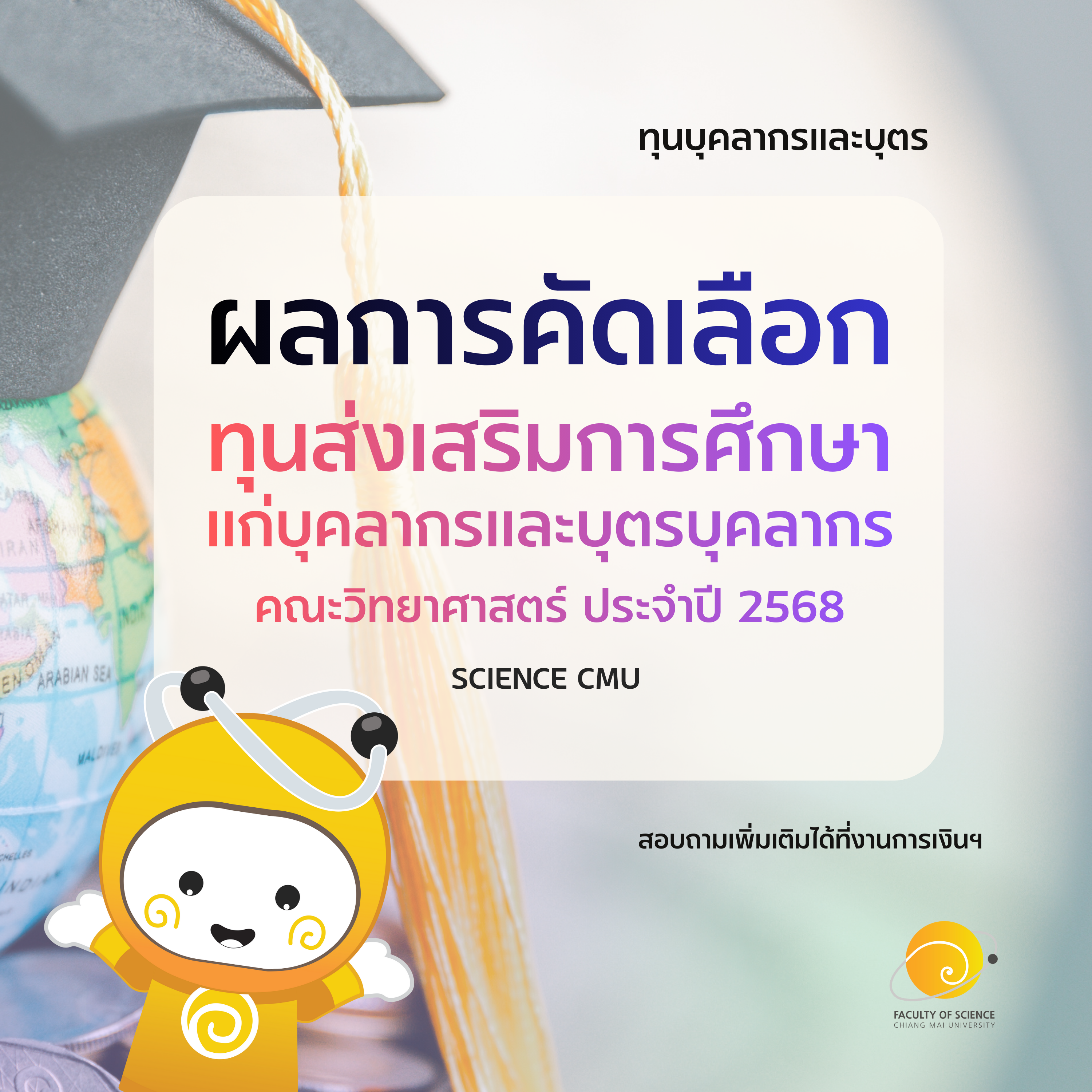 ประกาศผลการคัดเลือก ทุนส่งเสริมการศึกษาแก่บุคลากรและบุตรบุคลากร คณะวิทยาศาสตร์ ประจำปี 2568