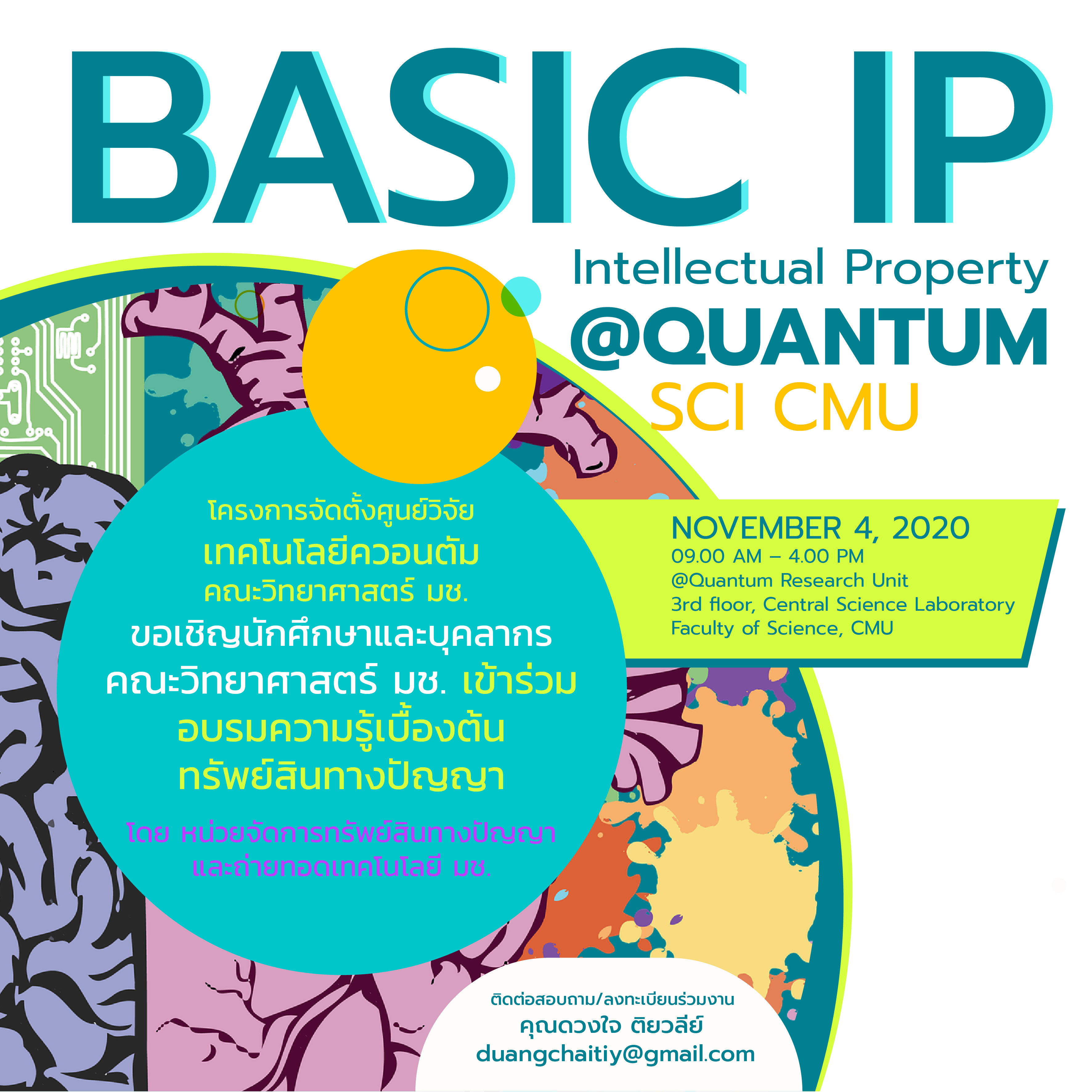 โครงการจัดตั้งศูนย์วิจัยเทคโนโลยีควอนตัมคณะวิทยาศาสตร์จัดอบรม IP เบื้องต้น