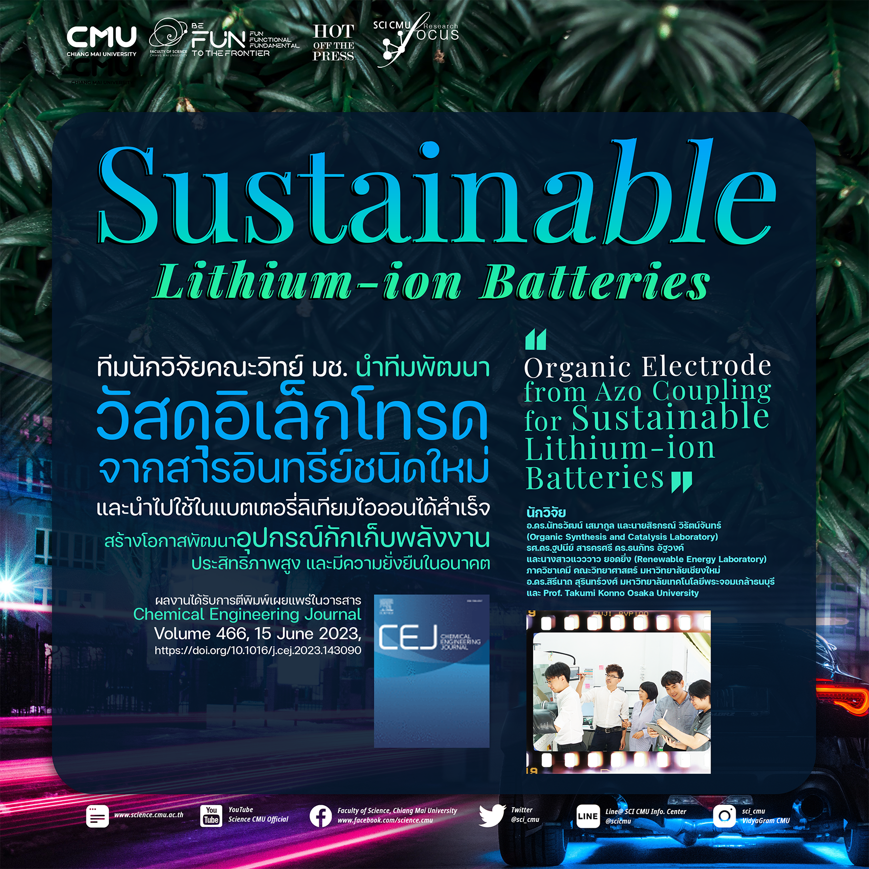 นักวิจัยคณะวิทย์ มช. นำทีมพัฒนาวัสดุอิเล็กโทรดจากสารอินทรีย์ชนิดใหม่ สร้างโอกาสพัฒนาอุปกรณ์กักเก็บพลังงานประสิทธิภาพสูง