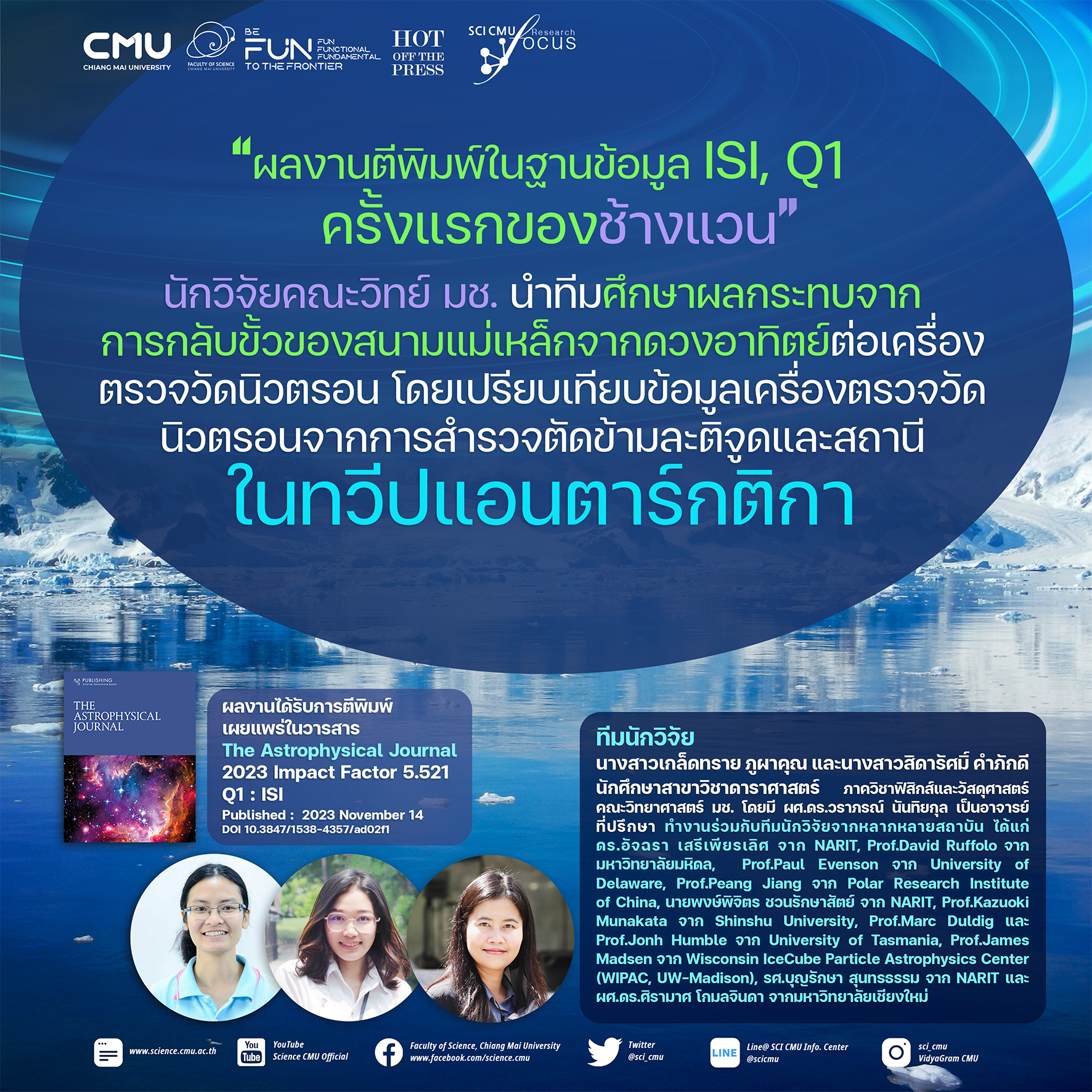 นักวิจัยคณะวิทย์ มช. นำทีมศึกษาผลกระทบจากการกลับขั้วของสนามแม่เหล็กจากดวงอาทิตย์ต่อเครื่องตรวจวัดนิวตรอนฯ