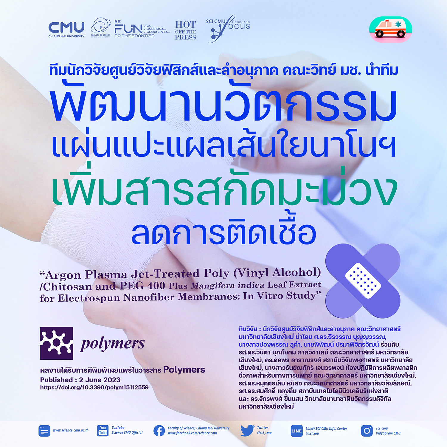 นักวิจัยคณะวิทย์ มช. นำทีมพัฒนานวัตกรรมแผ่นแปะแผลเส้นใยนาโนฯ เพิ่มสารสกัดมะม่วง ลดการติดเชื้อ