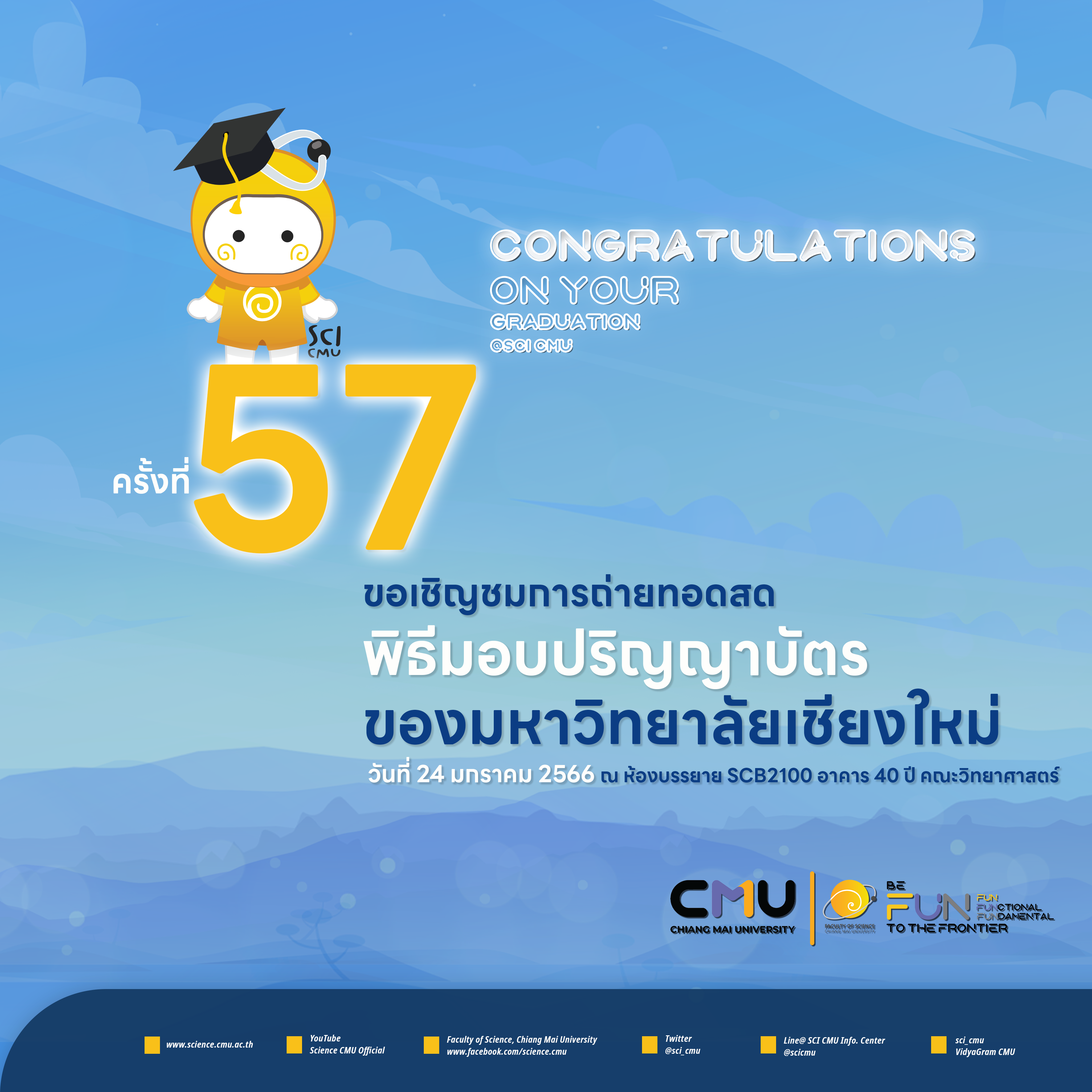 24 มกราคมนี้ คณะวิทยาศาสตร์ขอเชิญชมการถ่ายทอดสดพิธีมอบปริญญาบัตร ณ ห้องบรรยาย SCB2100 ชั้น 1 อาคาร 40 ปีฯ