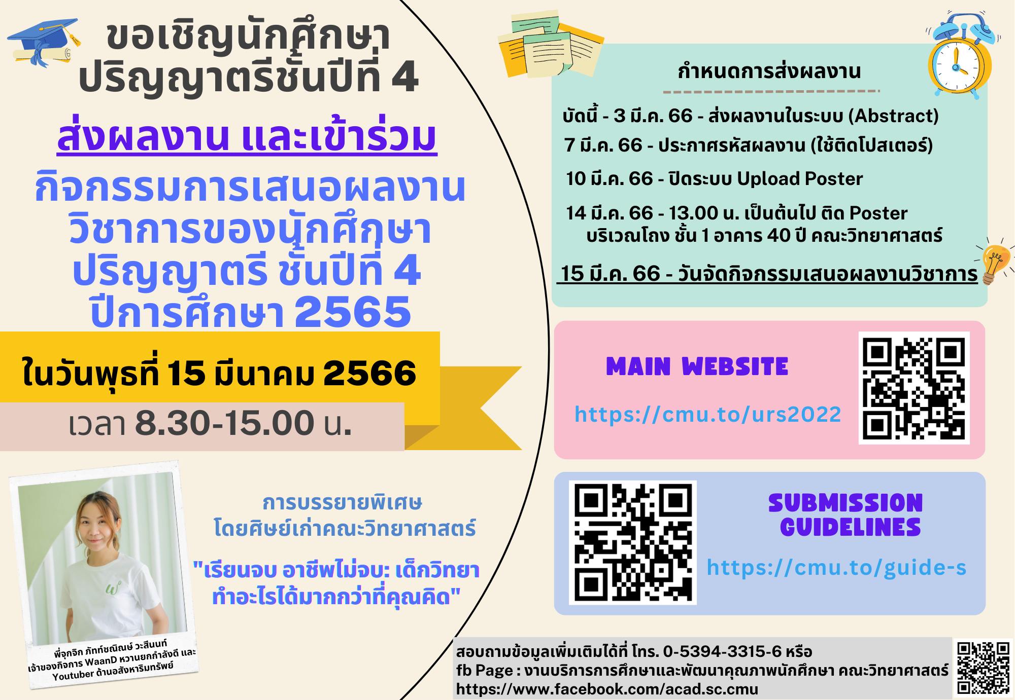 ขอเชิญเข้าร่วมกิจกรรมการเสนอผลงานวิชาการของนักศึกษาชั้นปีที่ 4 ประจำปีการศึกษา 2565