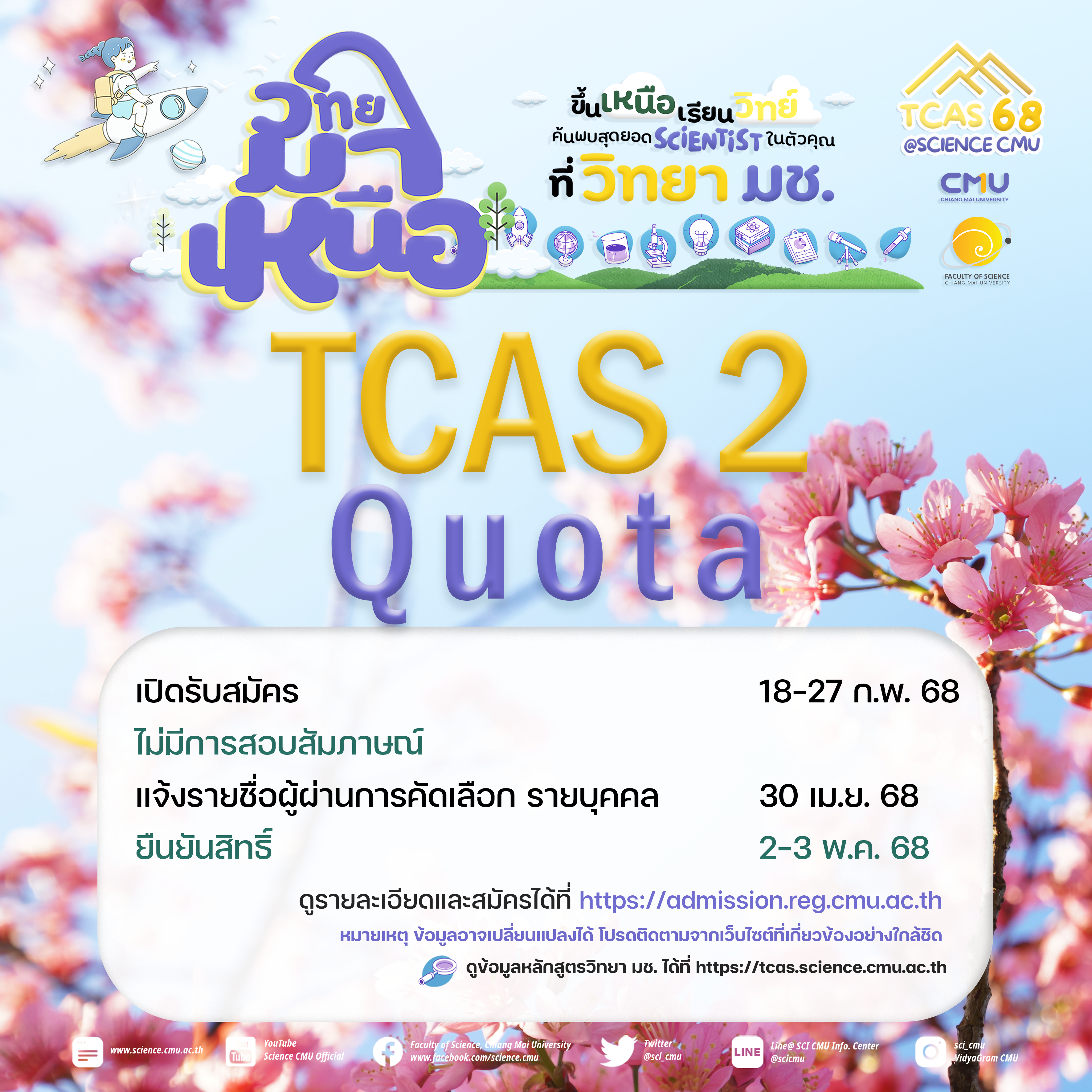 รับสมัครลูกช้างขึ้นเหนือ กับ TCAS รอบที่ 2 Quota ระดับปริญญาตรี ปีการศึกษา 2568 เปิดรับสมัคร 18-27 ก.พ. 68 นี้
