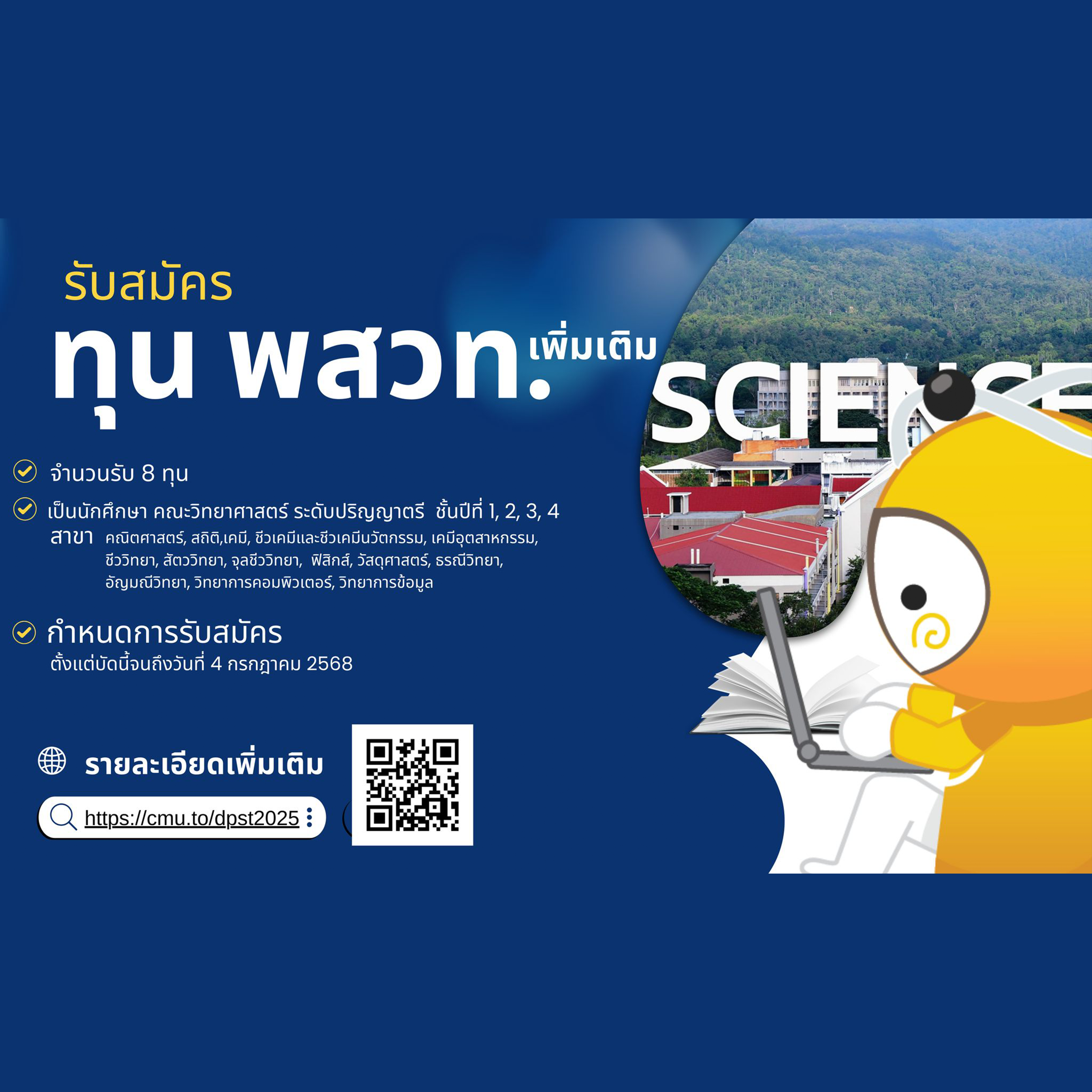 รับสมัครนักศึกษาเพื่อรับทุนโครงการ พสวท. (เพิ่มเติม) ประจำปีการศึกษา 2568