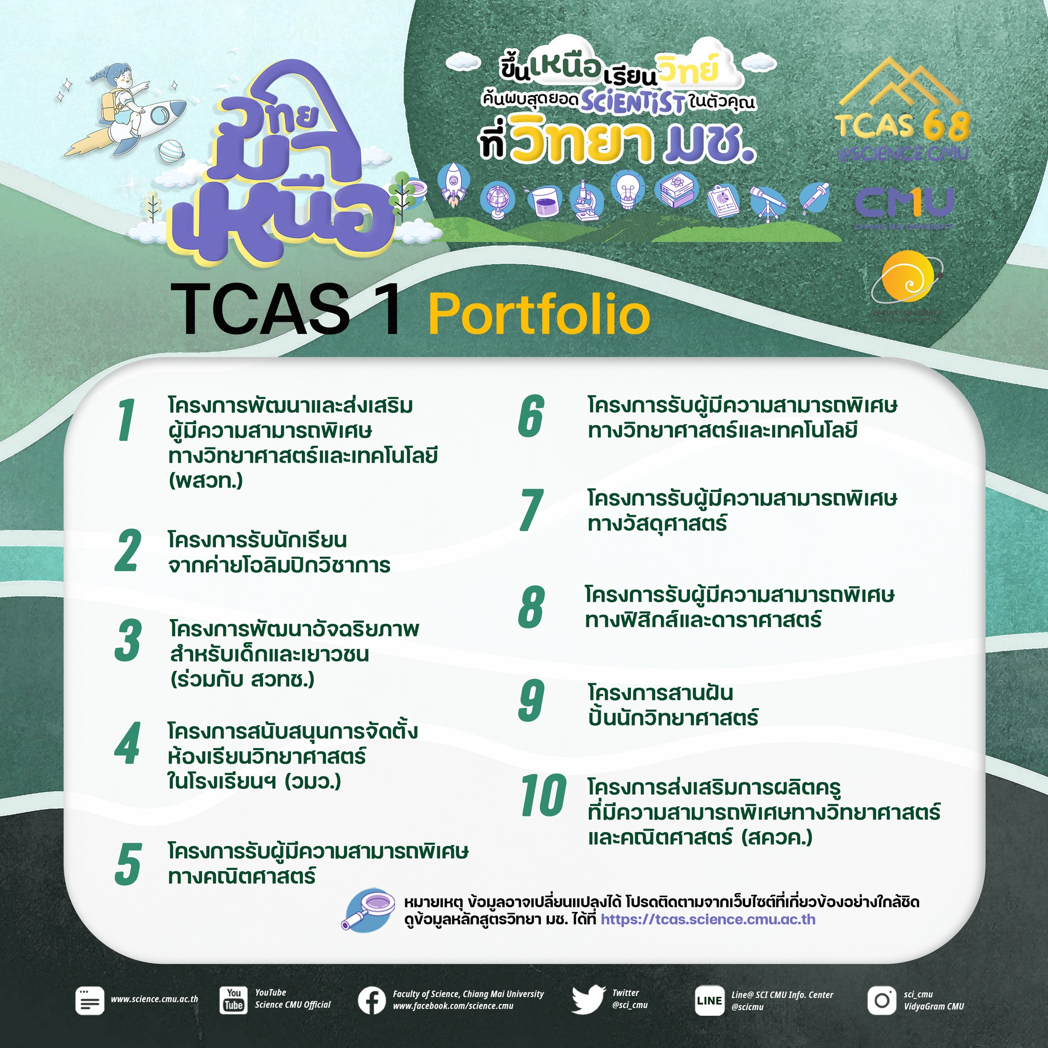 TCAS1 @SCI CMU ประกาศมหาวิทยาลัยเชียงใหม่ เรื่อง การรับสมัครคัดเลือกบุคคลเข้าศึกษาในมหาวิทยาลัยเชียงใหม่ TCAS รอบที่ 1 แฟ้มสะสมผลงาน Portfolio
