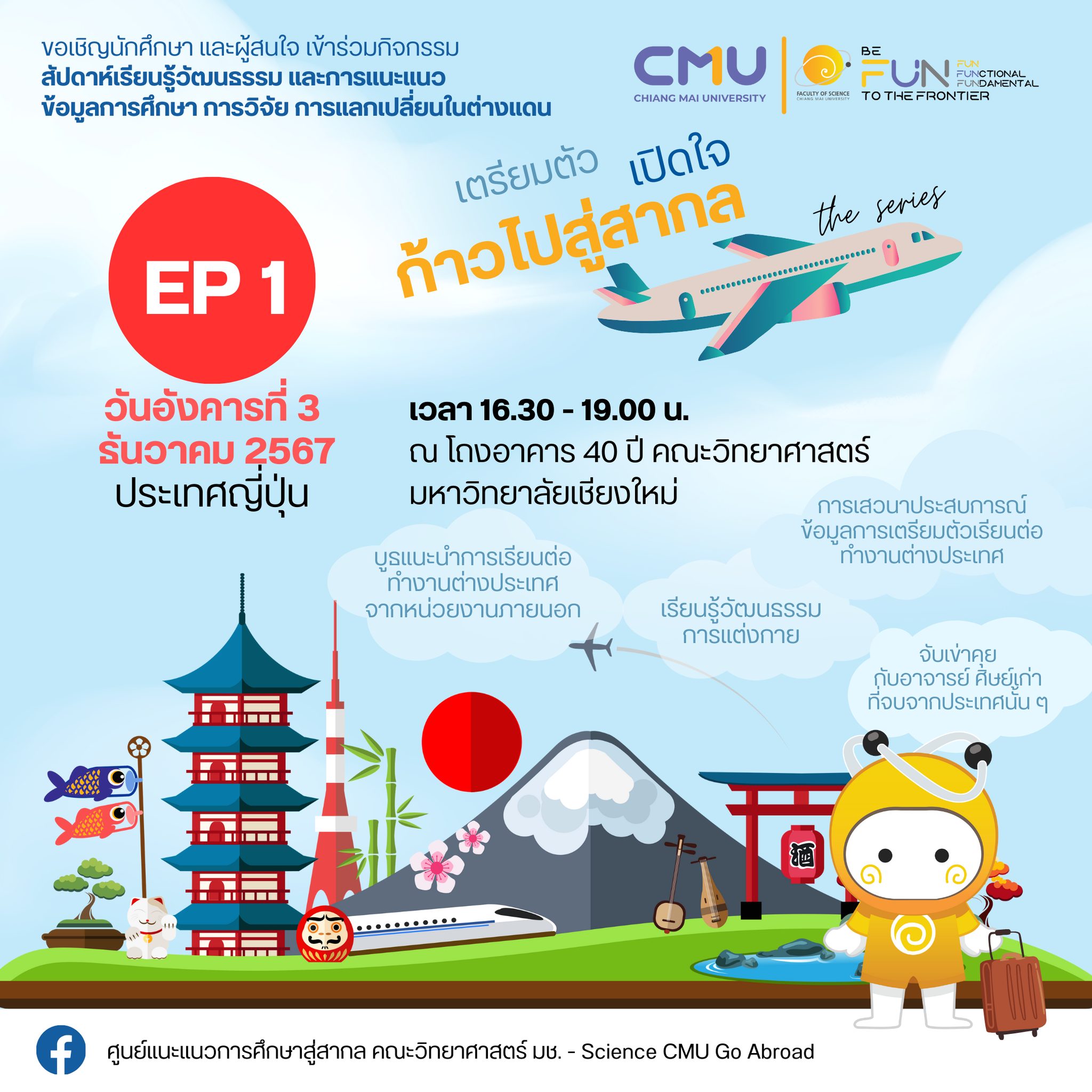 ศูนย์แนะแนวการศึกษาสู่สากล คณะวิทยาศาสตร์ มช. - Science CMU Go Abroad จัดกิจกรรม เตรียมตัว เปิดใจ ก้าวไปสู่สากล EP.1 ประเทศญี่ปุ่น