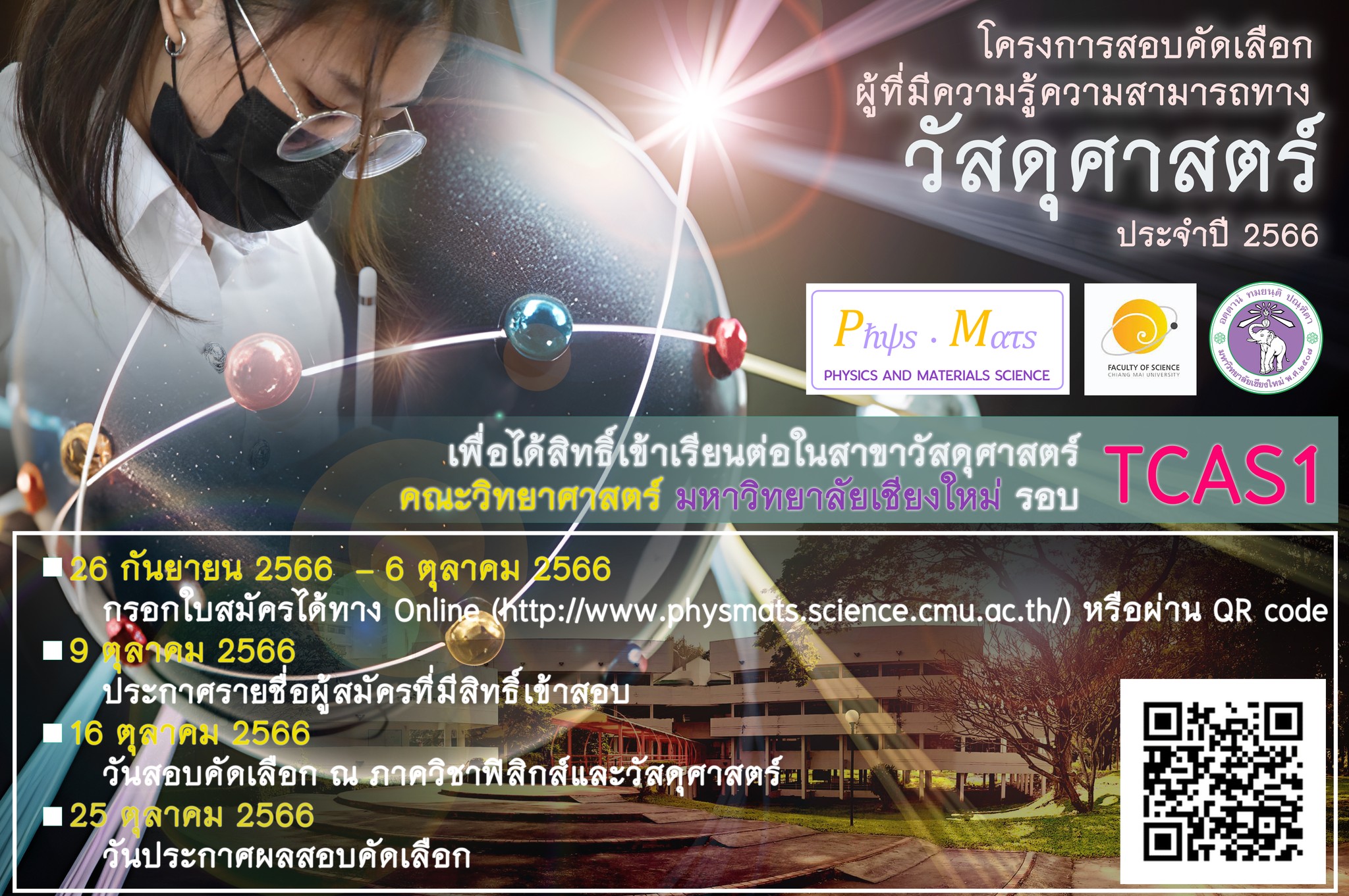 อยากเรียน ป.ตรี วัสดุศาสตร์ มช. สมัครด่วน หมดเขต 6 ต.ค.นี้