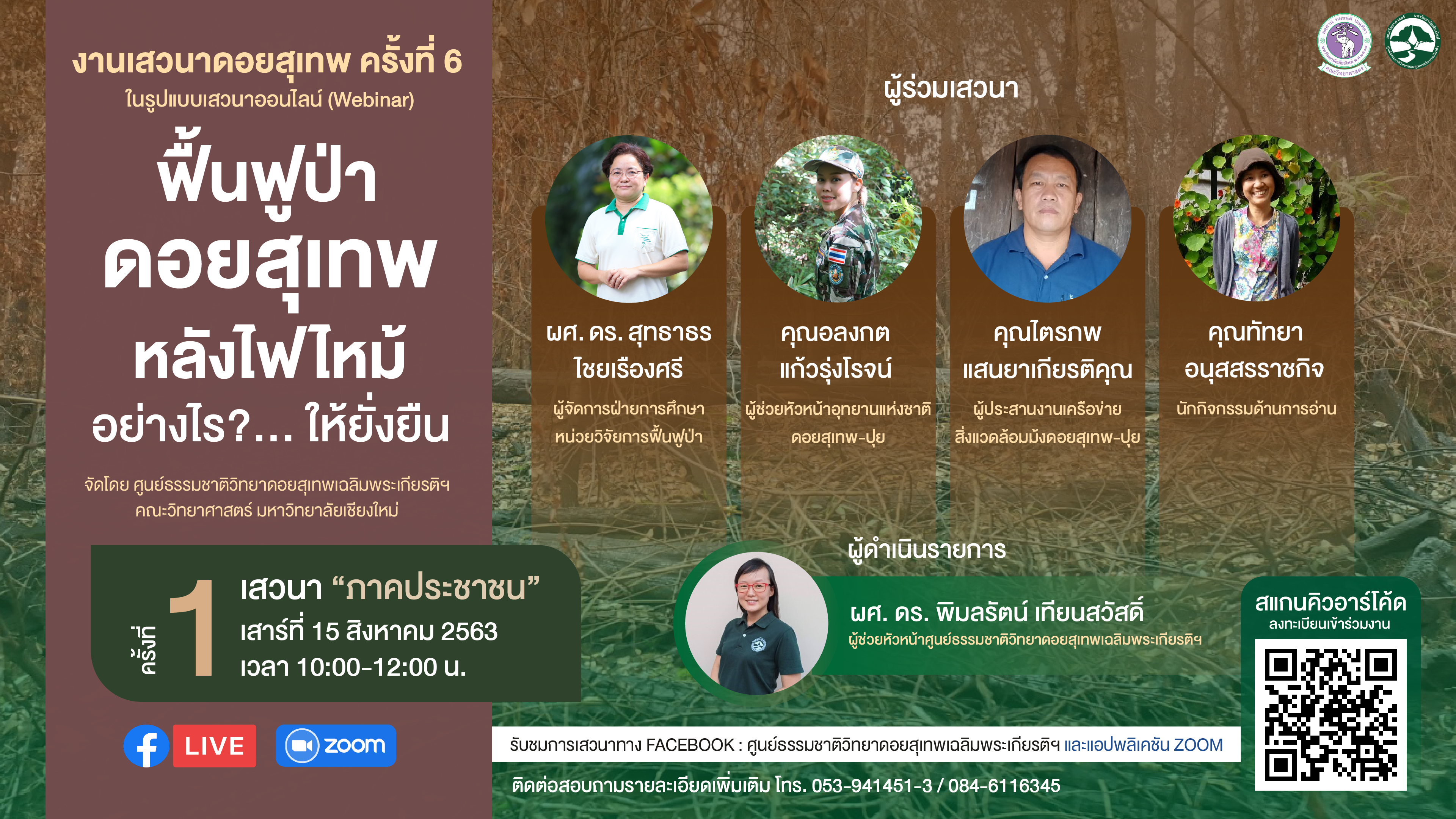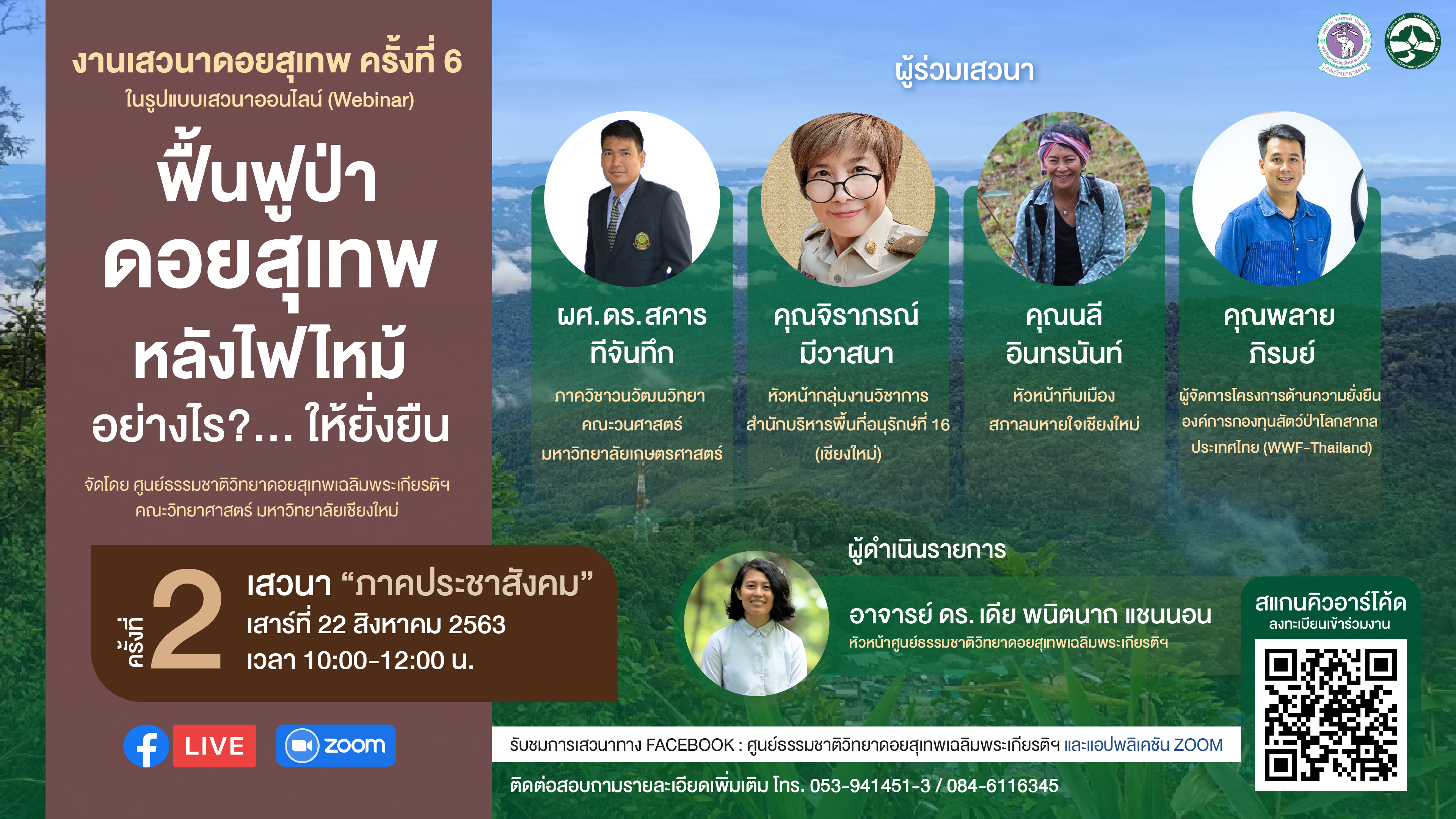 ภาคประชาชนจะมีส่วนร่วมในการฟื้นฟูป่าดอยสุเทพหลังไฟไหม้อย่างไรให้ยั่งยืน ร่วมหาคำตอบกันได้ในงานเสวนาดอยสุเทพ ครั้งที่ 6 รูปแบบออนไลน์