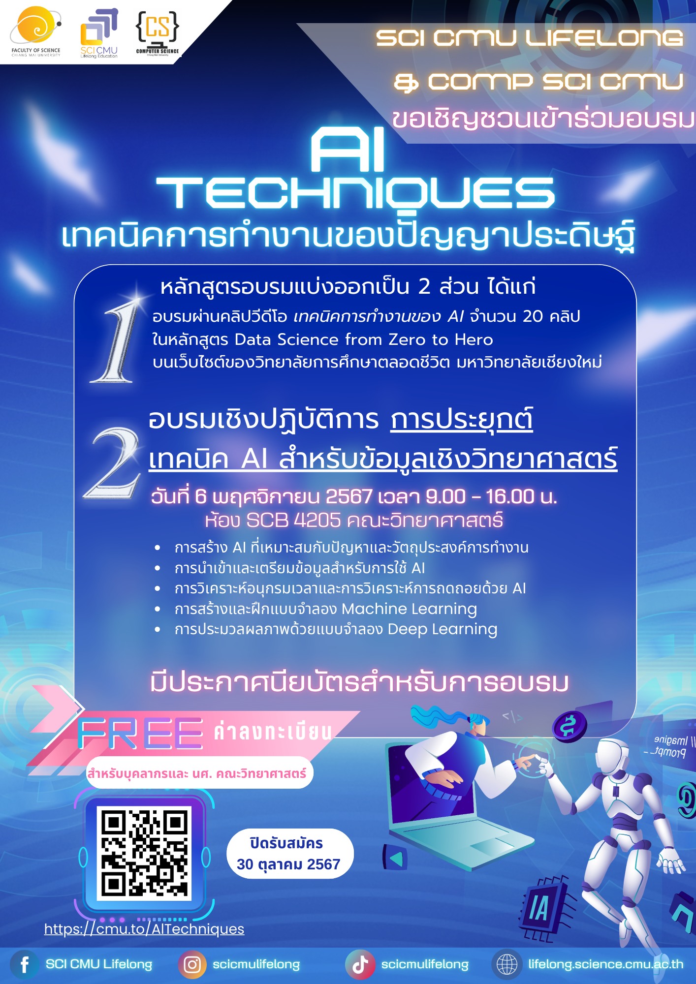 ขอเชิญผู้สนใจเข้าร่วมอบรมหลักสูตร AI Techniques พร้อมสิทธิพิเศษสุดปัง