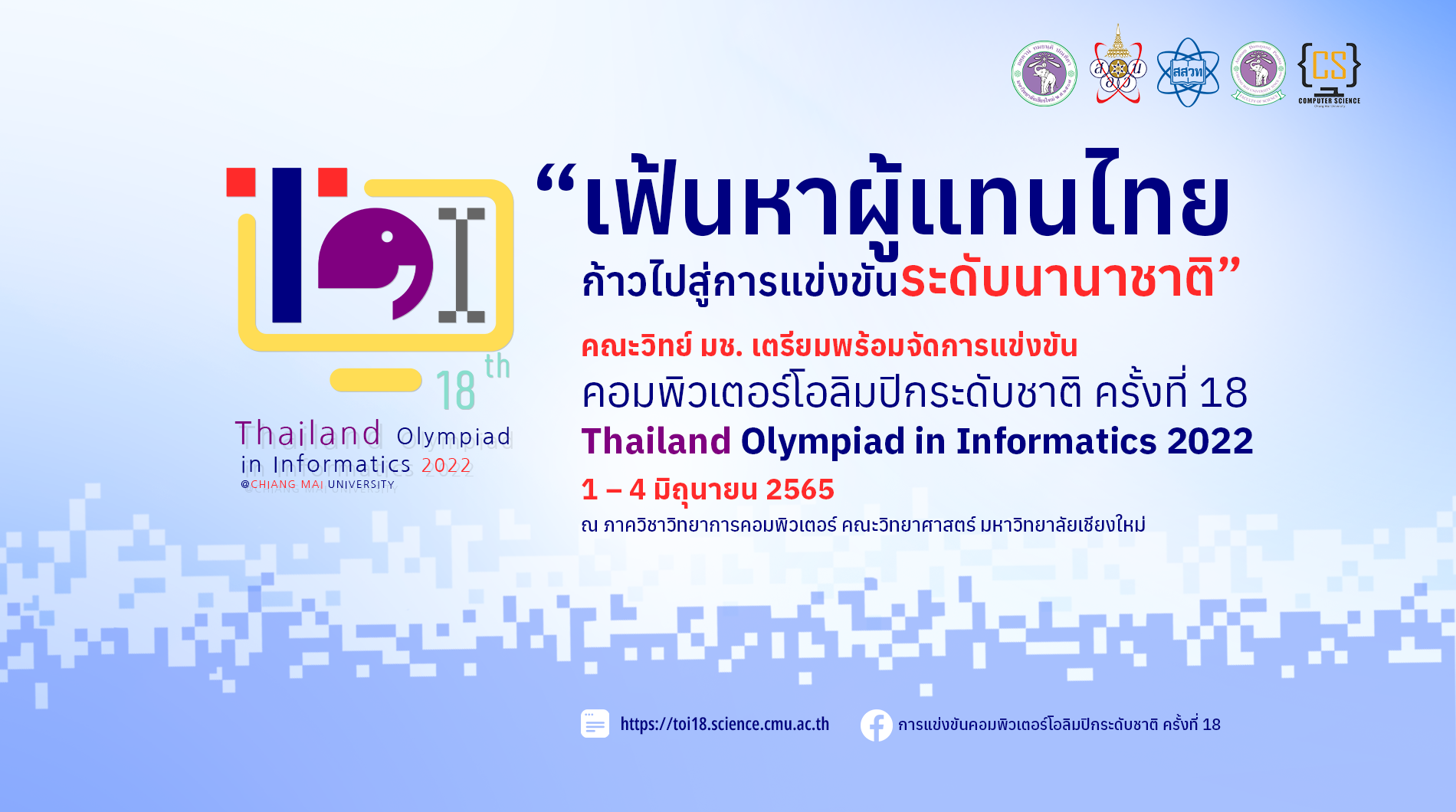 คณะวิทย์ มช. เตรียมพร้อมจัดการแข่งขันคอมพิวเตอร์โอลิมปิกระดับชาติ ครั้งที่ 18 Thailand Olympiad in Informatics 1 – 4 มิถุนายน 65 เฟ้นหาผู้แทนไทยก้าวไปสู่การแข่งขันระดับนานาชาติ