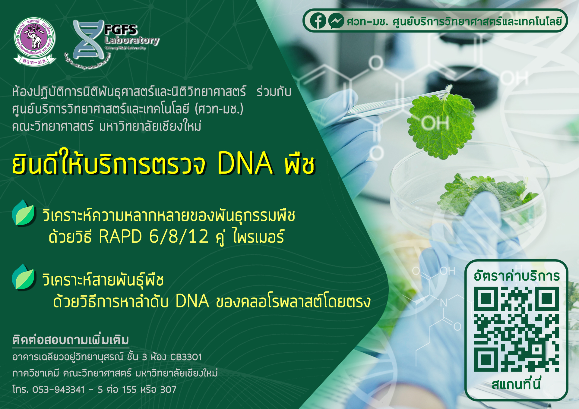 ห้องปฏิบัติการนิติพันธุศาสตร์และนิติวิทยาศาสตร์ (Forensic Genetics and Forensic Science Laboratory) และ ศวท.-มช. พร้อมให้บริการตรวจ DNA พืชโดยผู้เชี่ยวชาญ