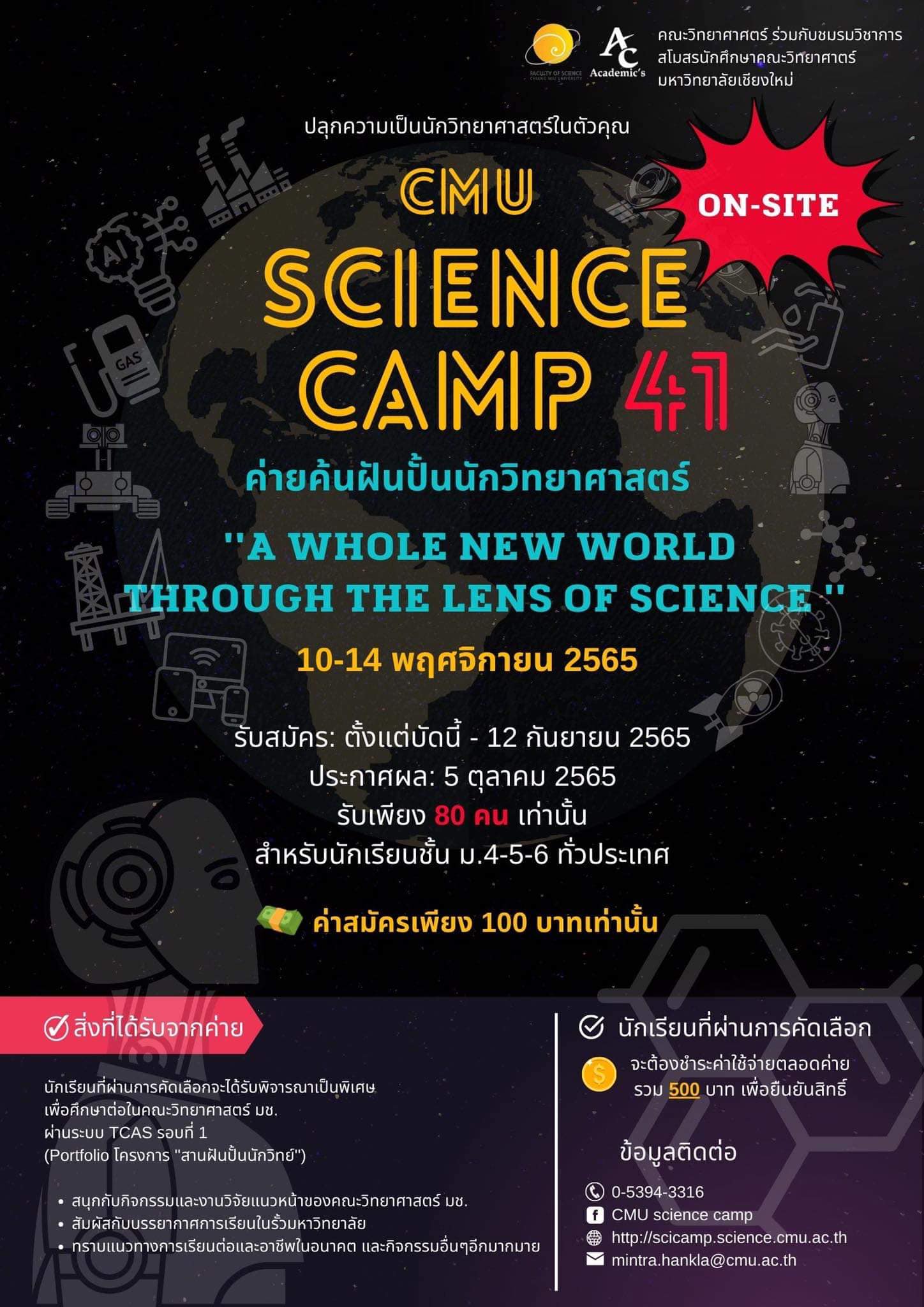 คณะวิทยาศาสตร์ มหาวิทยาลัยเชียงใหม่ เปิดรับสมัครนักเรียนเข้าค่าย CMU Science Camp #41 ค่ายค้นฝันปั้นนักวิทย์