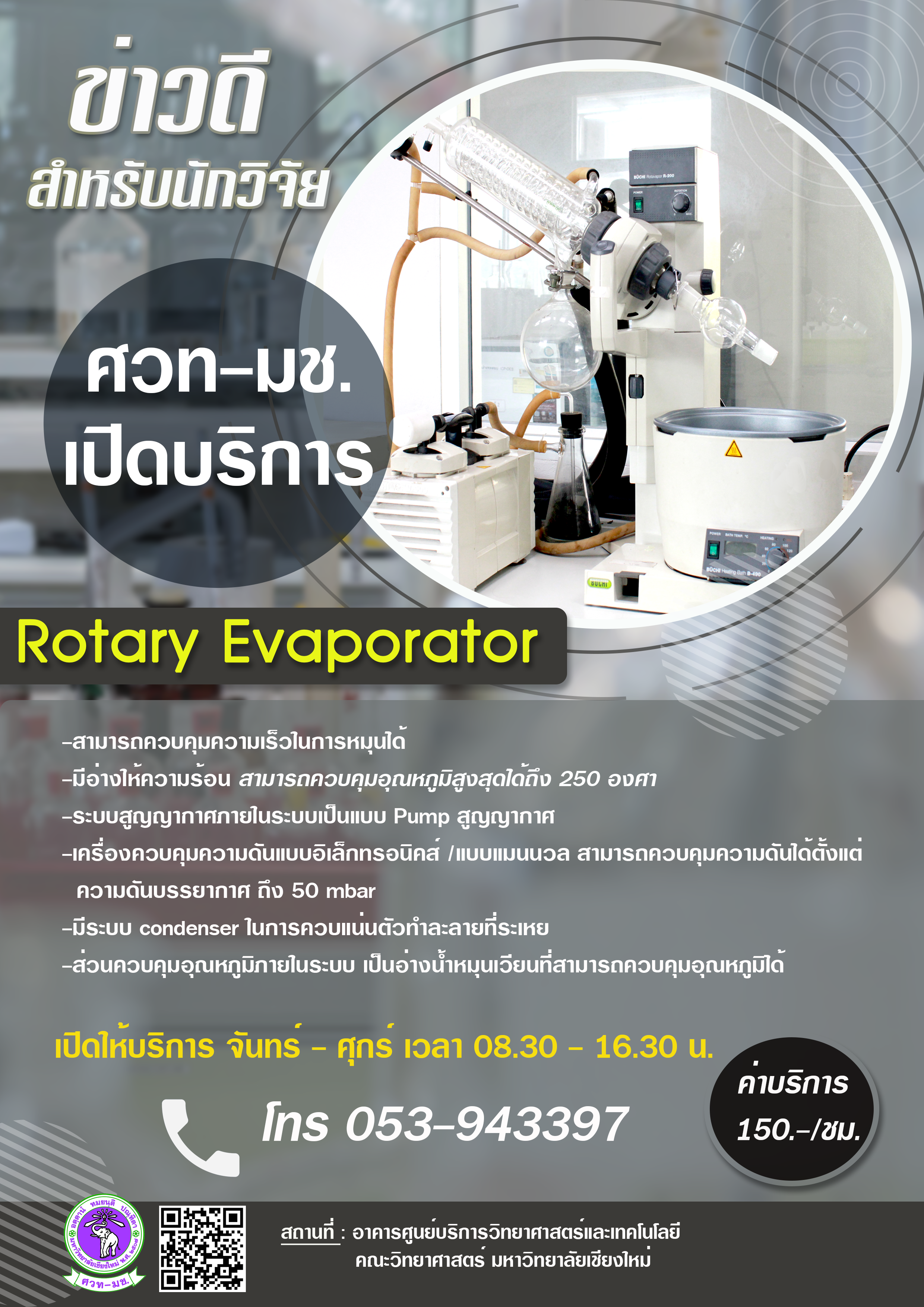 ศวท-มช.เปิดให้บริการใช้เครื่อง Rotary Evaporator