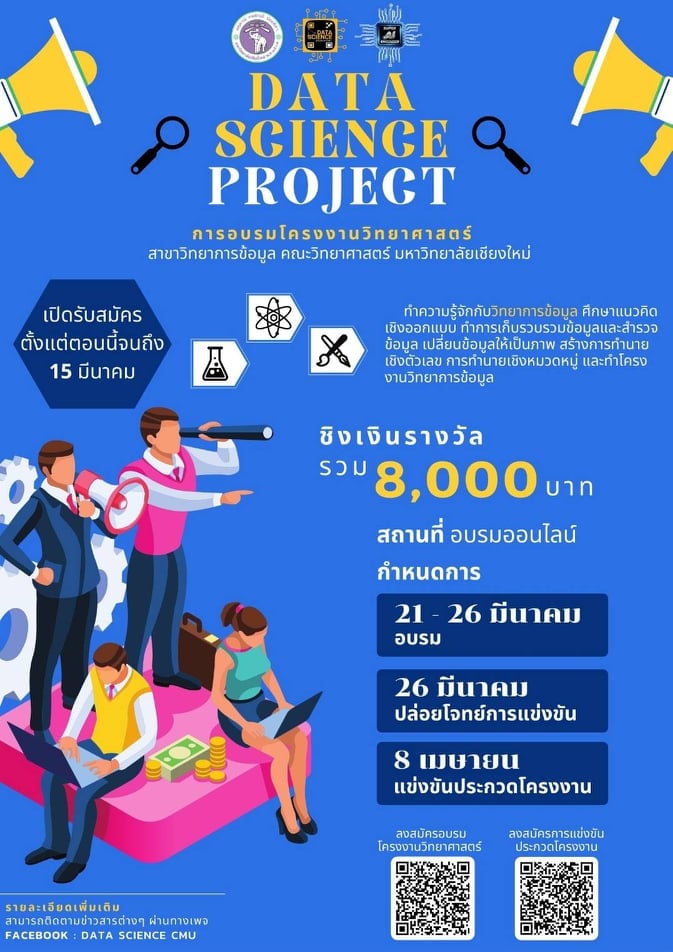 ขอเชิญนักเรียนในระดับมัธยมศึกษาหรือเทียบเท่า เข้าร่วมการอบรมโครงงานวิทยาศาสตร์ Data Science Project 2022