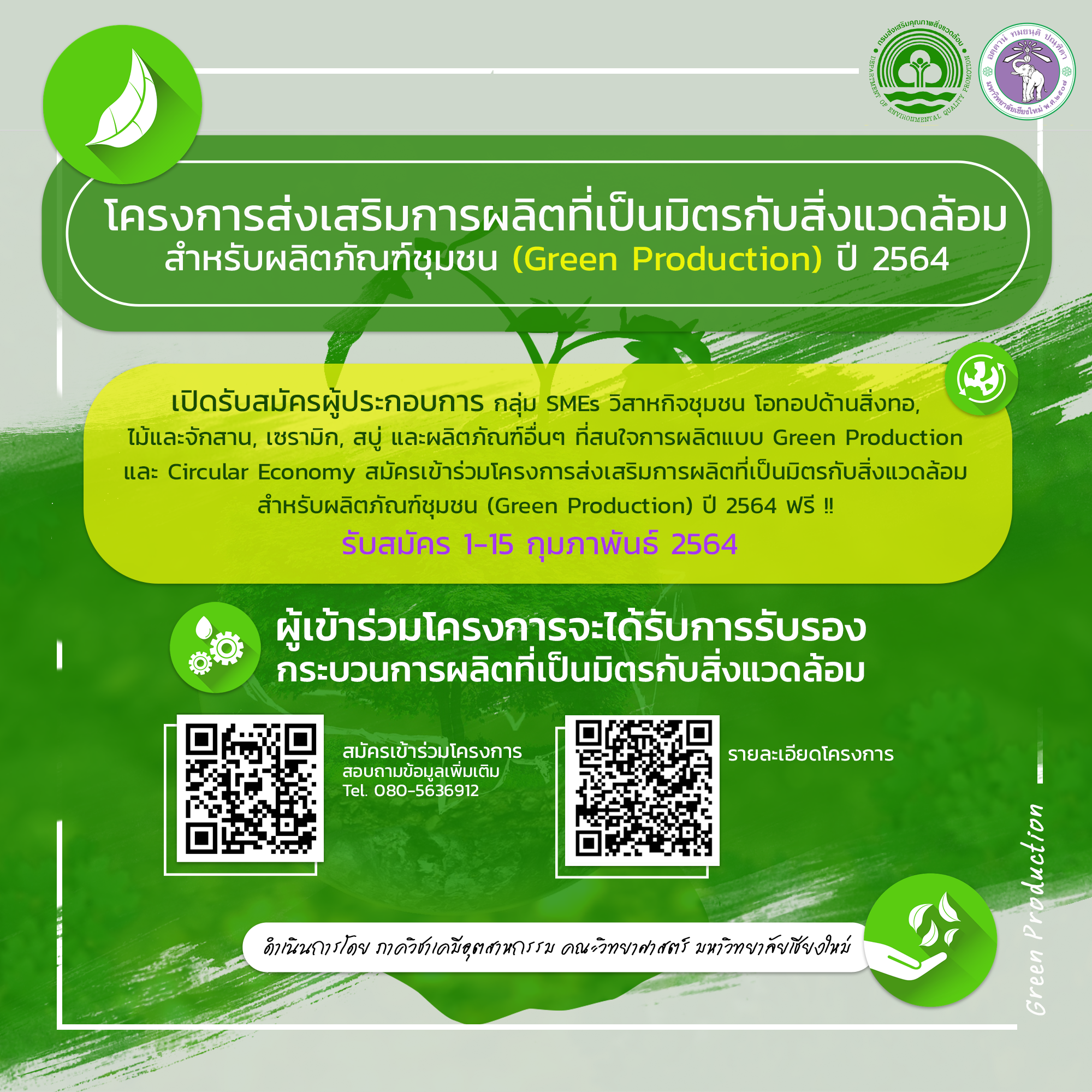 ใกล้หมดเขตแล้ว เปิดรับสมัครผู้ประกอบการ กลุ่ม SMEs วิสาหกิจชุมชนฯ เข้าร่วมโครงการส่งเสริมการผลิตที่เป็นมิตรกับสิ่งแวดล้อม สำหรับผลิตภัณฑ์ชุมชน (Green Production) ปี 2564 ฟรี
