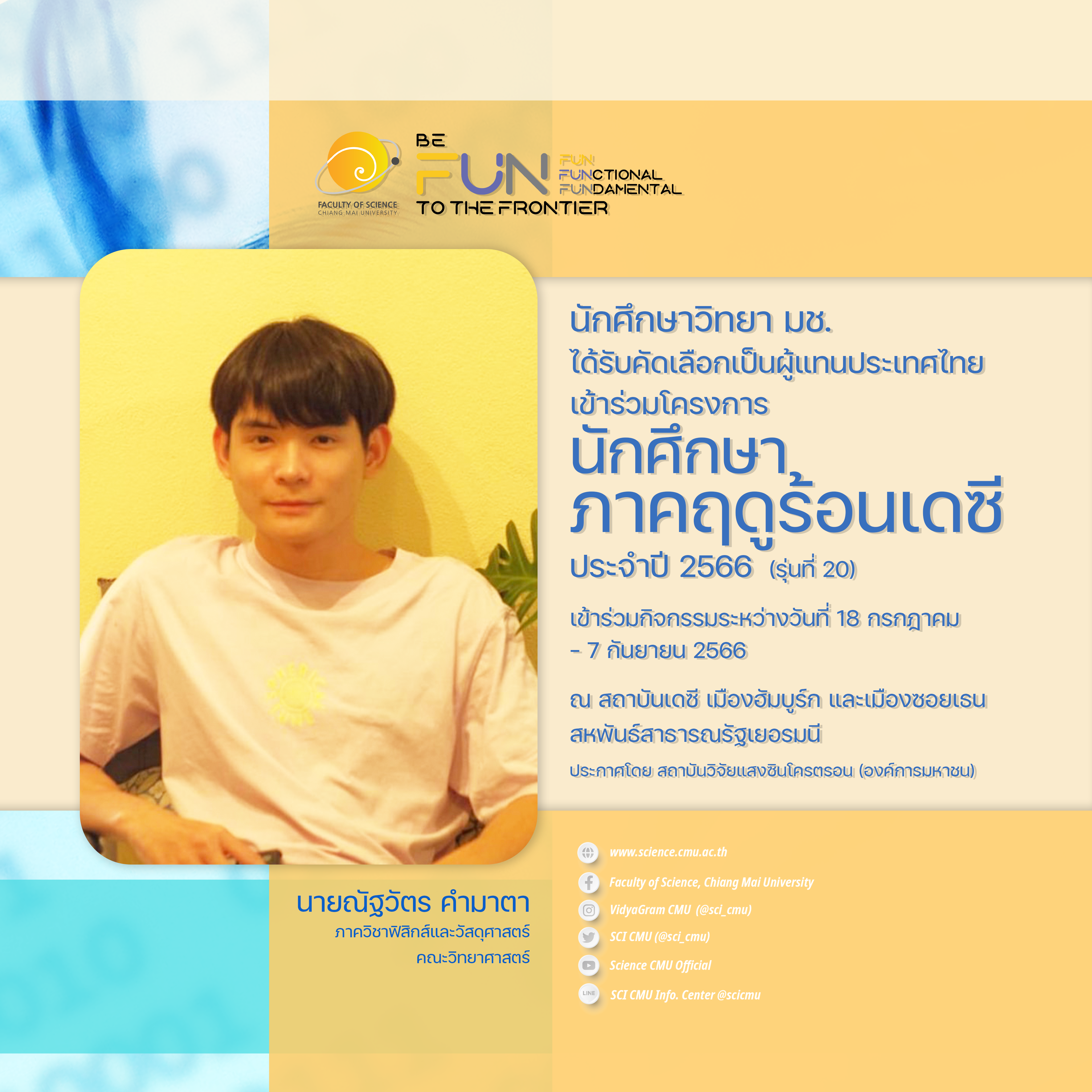นักศึกษาวิทยา มช. ได้รับคัดเลือกเป็นผู้แทนประเทศไทยเข้าร่วมโครงการนักศึกษาภาคฤดูร้อนเดซี ประจำปี 2566