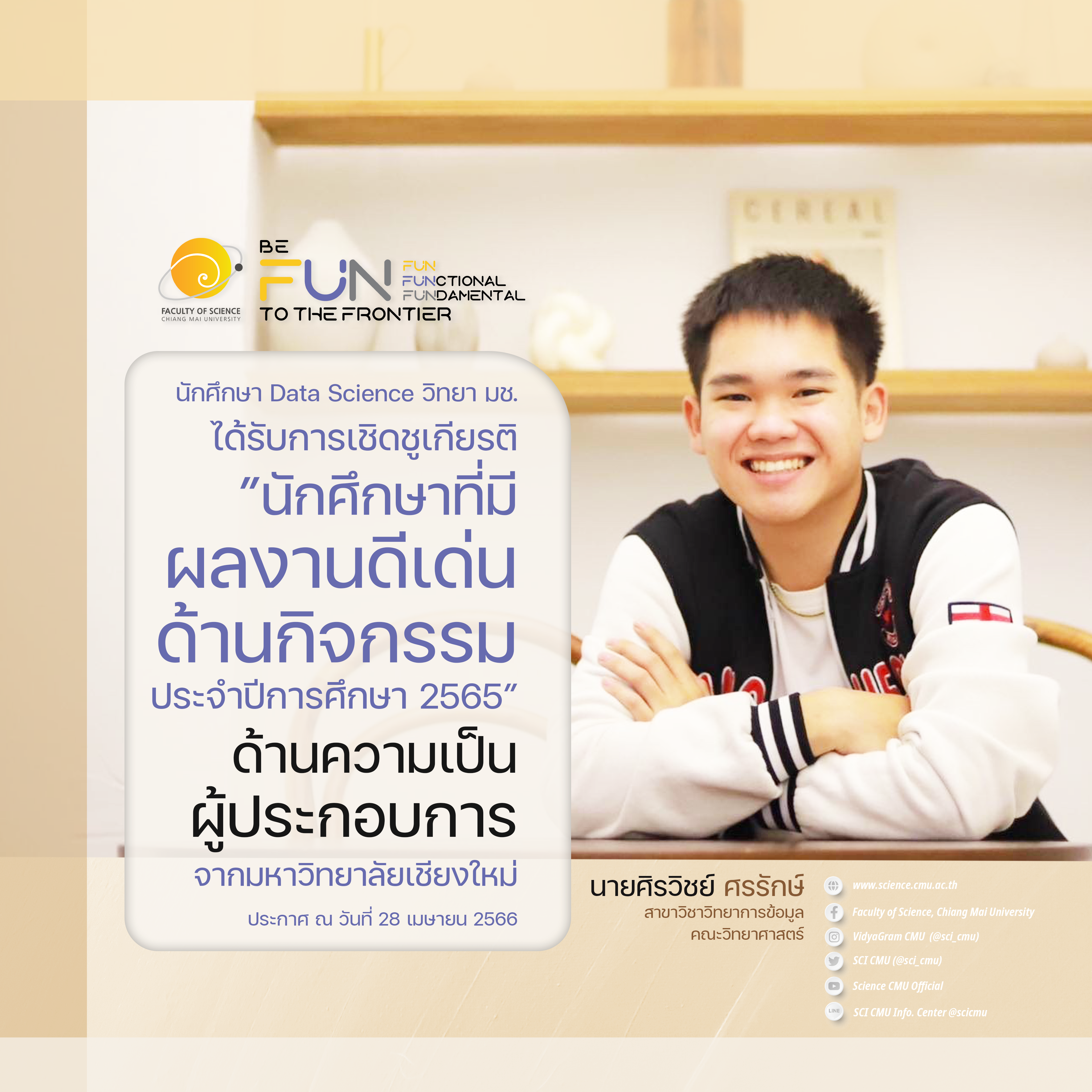 นักศึกษา Data Science ได้รับการเชิดชูเกียรติ นักศึกษาที่มีผลงานดีเด่นด้านกิจกรรม ประจำปีการศึกษา 2565