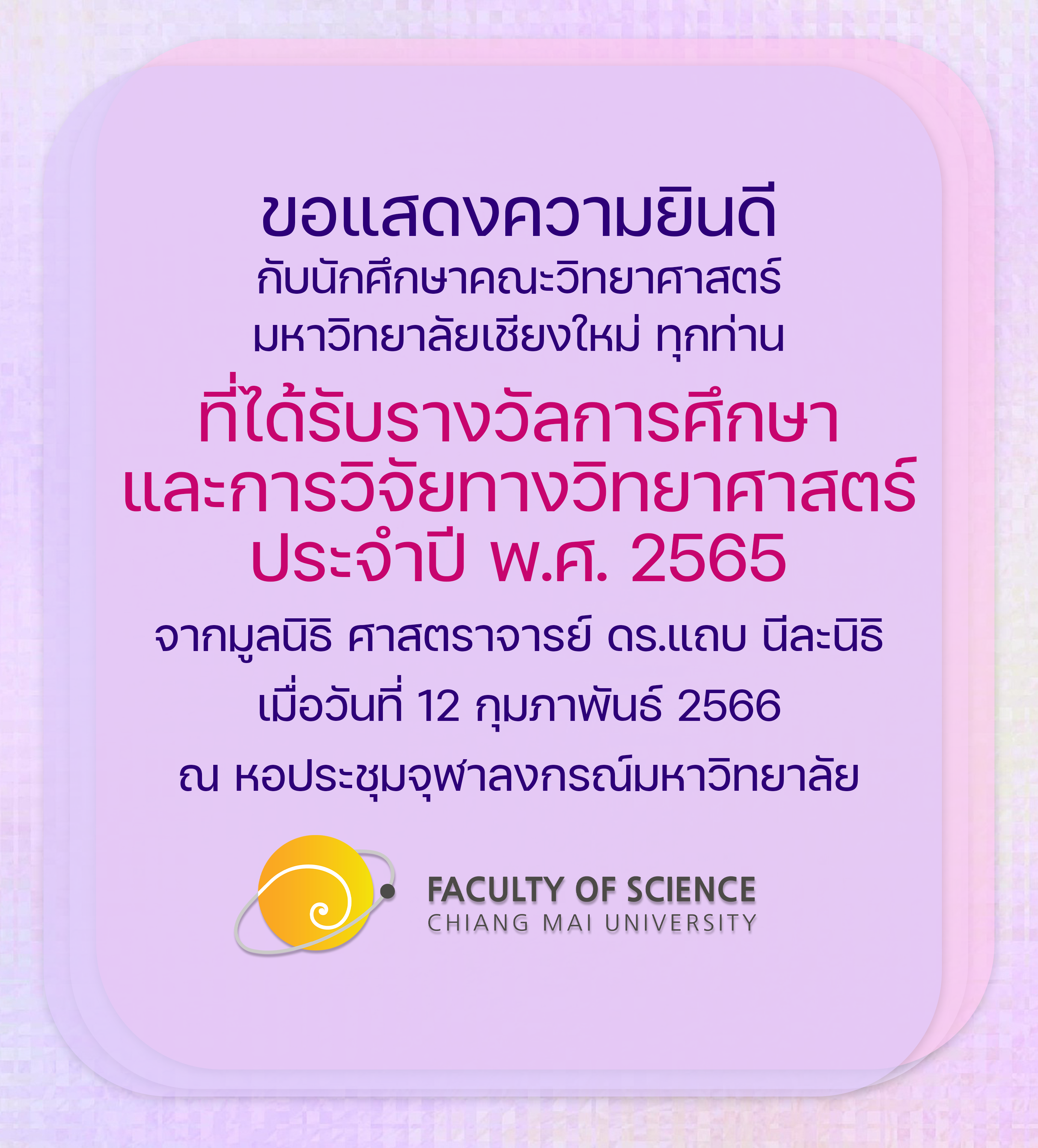 ขอแสดงความยินดีกับนักศึกษาคณะวิทยาศาสตร์ที่ได้รับรางวัลการศึกษาและการวิจัยทางวิทยาศาสตร์ ประจำปี พ.ศ. 2565 จากมูลนิธิ ศาสตราจารย์ ดร.แถบ นีละนิธิ