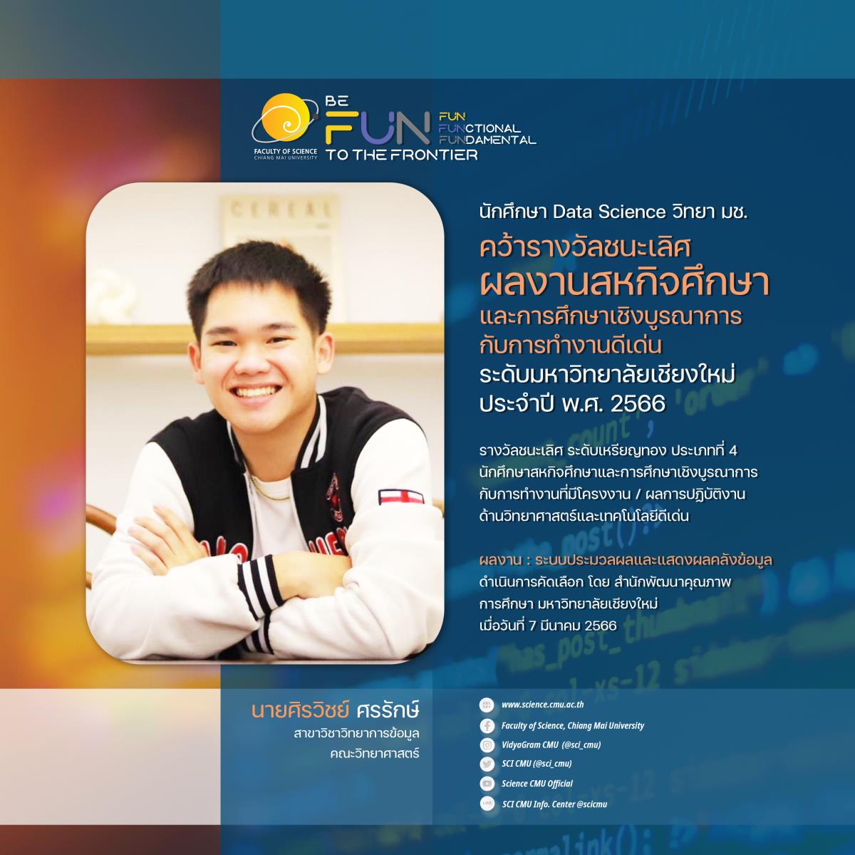 นักศึกษา Data Science วิทยา มช. คว้ารางวัลชนะเลิศ ผลงานสหกิจศึกษาฯ ระดับมหาวิทยาลัยเชียงใหม่