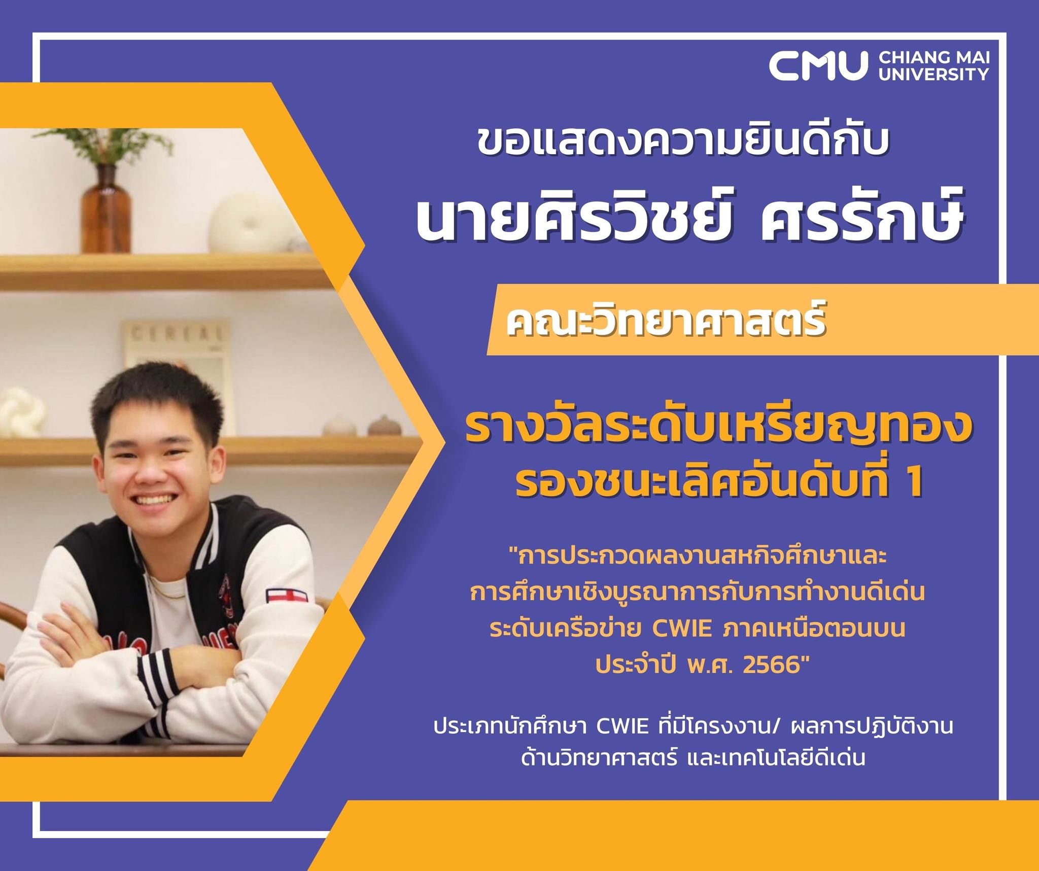 นักศึกษาคว้ารางวัลผลงานสหกิจศึกษาฯ ดีเด่น ระดับเครือข่าย CWIE ภาคเหนือตอนบน