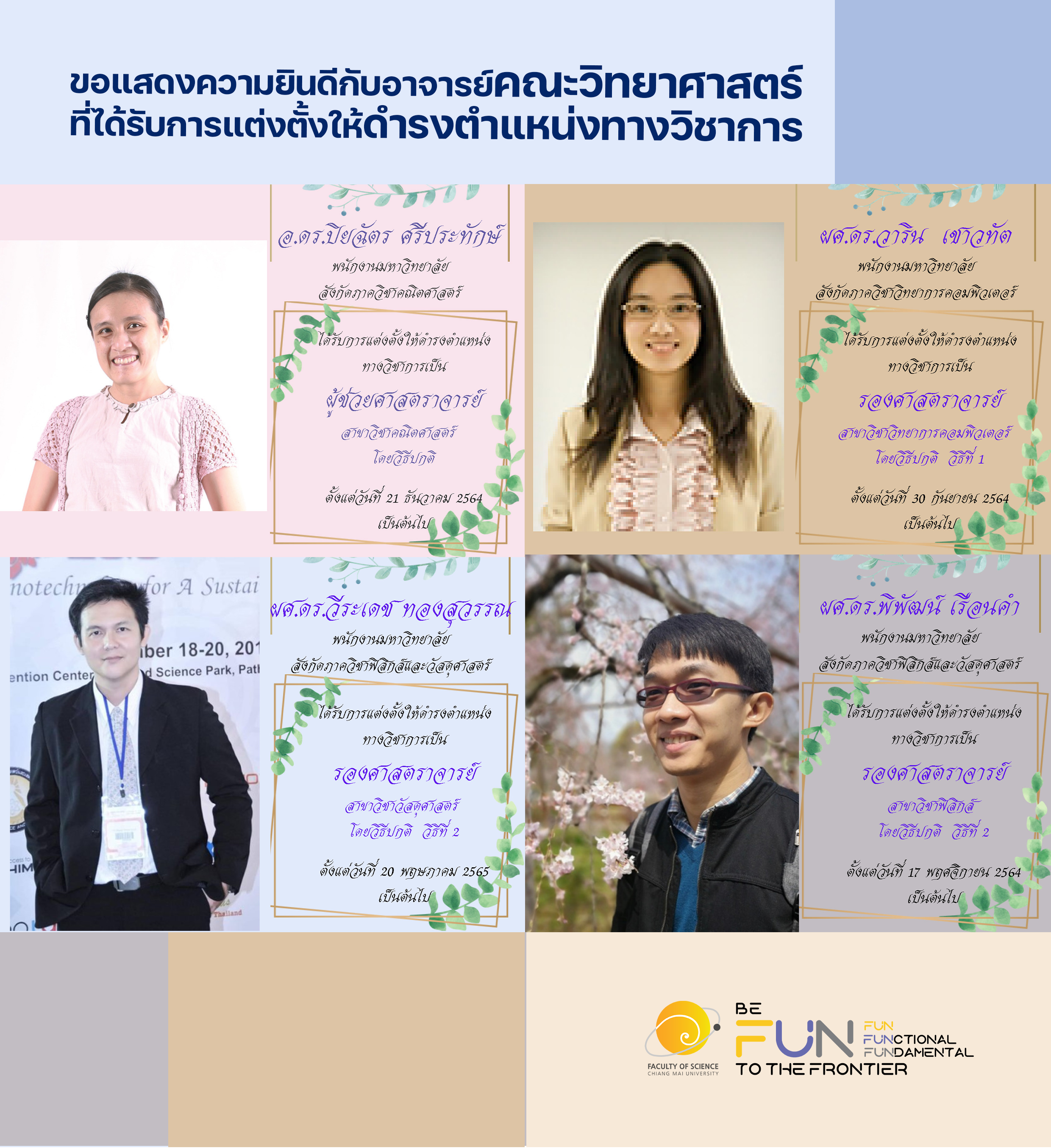 ขอแสดงความยินดีกับอาจารย์คณะวิทยาศาสตร์ ที่ได้รับการแต่งตั้งให้ดำรงตำแหน่งทางวิชาการ