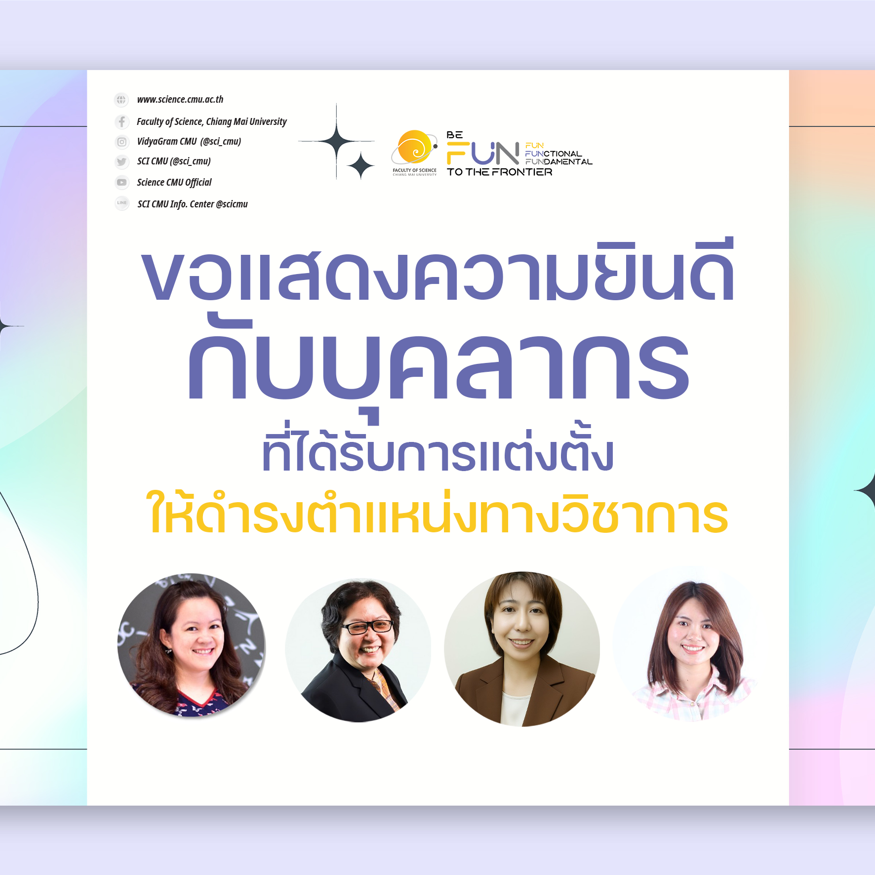 ขอแสดงความยินดีกับอาจารย์ประจำคณะวิทยาศาสตร์ที่ได้รับการแต่งตั้งให้ดำรงตำแหน่งทางวิชาการ