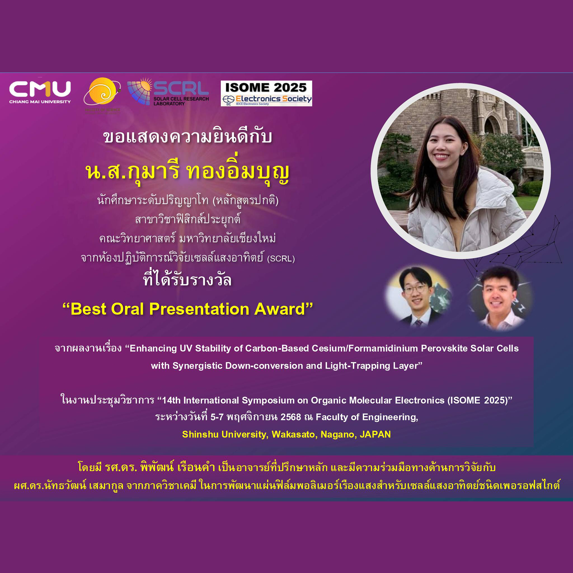 นักศึกษาป.โท ได้รับรางวัลในงานประชุมวิชาการ ISOME 2025 ณ ประเทศญี่ปุ่น