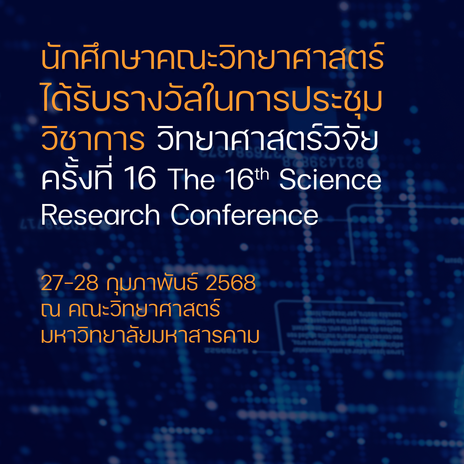 นักศึกษาคณะวิทยาศาสตร์ได้รับรางวัลในการประชุมวิชาการ วิทยาศาสตร์วิจัย ครั้งที่ 16