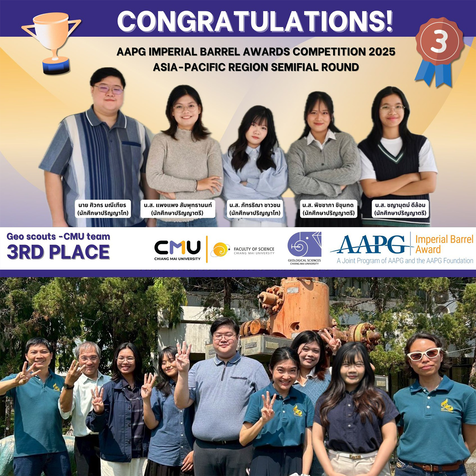 ทีมนักศึกษาสาขาวิชาธรณีวิทยาคว้ารางวัลรองชนะเลิศอันดับที่ 2 การแข่งขัน AAPG Imperial Barrel Award (IBA) 2025 ระดับภูมิภาคเอเชีย-แปซิฟิก (Asia-Pacific region)