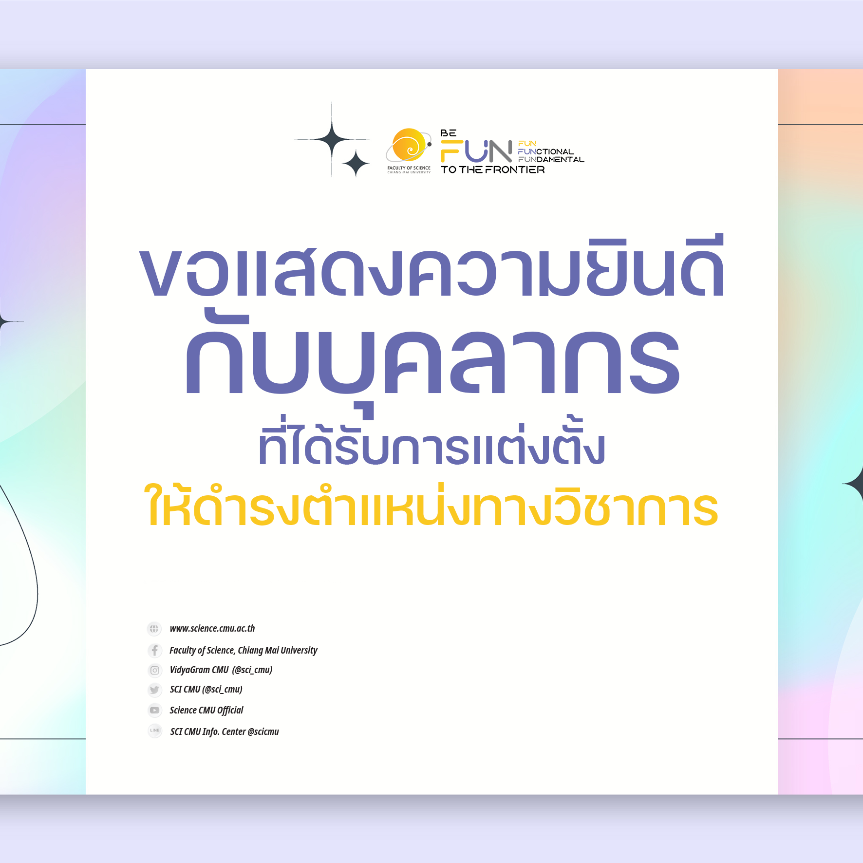 ขอแสดงความยินดีกับบุคลากรคณะวิทยาศาสตร์ที่ได้รับการแต่งตั้งให้ดำรงตำแหน่งทางวิชาการ