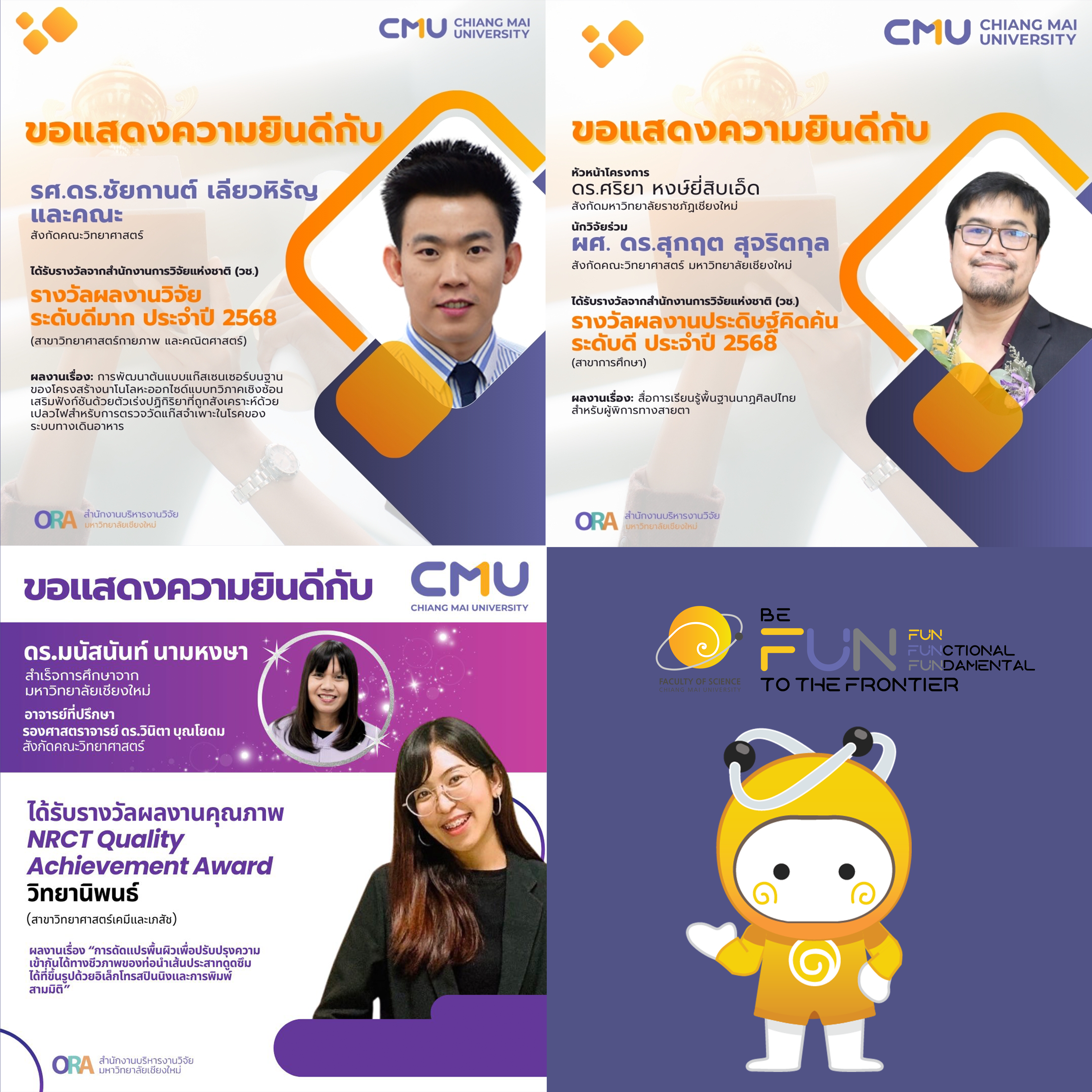 ขอแสดงความยินดีกับอาจารย์ และผู้สำเร็จการศึกษาจากคณะวิทยาศาสตร์ ที่ได้รับรางวัลการวิจัยแห่งชาติ ประจำปีงบประมาณ 2568 และรางวัลผลงานคุณภาพ NRCT Quality Achievement Award