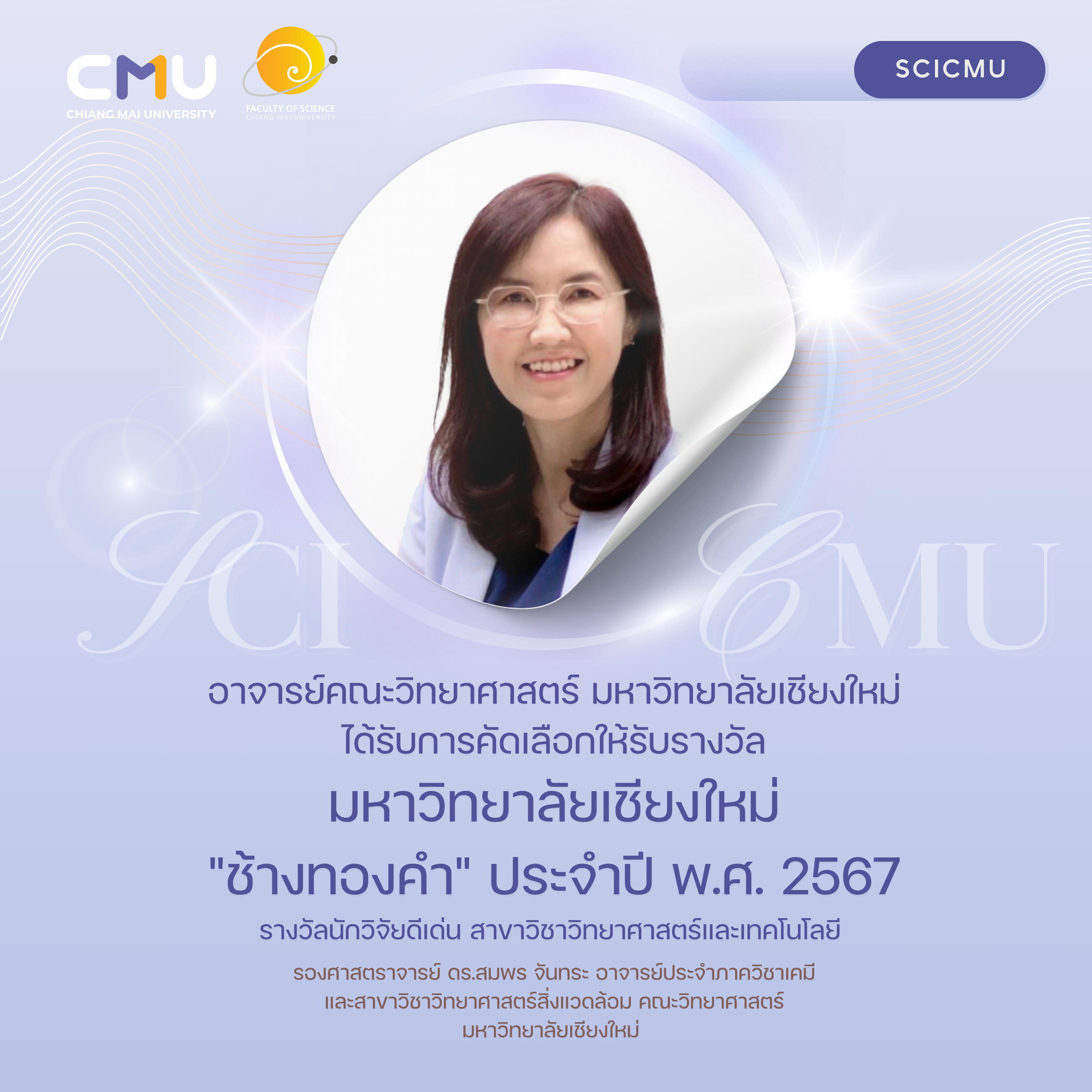 อาจารย์คณะวิทยาศาสตร์ ได้รับการคัดเลือกให้รับรางวัลมหาวิทยาลัยเชียงใหม่ ช้างทองคำ ประจำปี พ.ศ. 2567