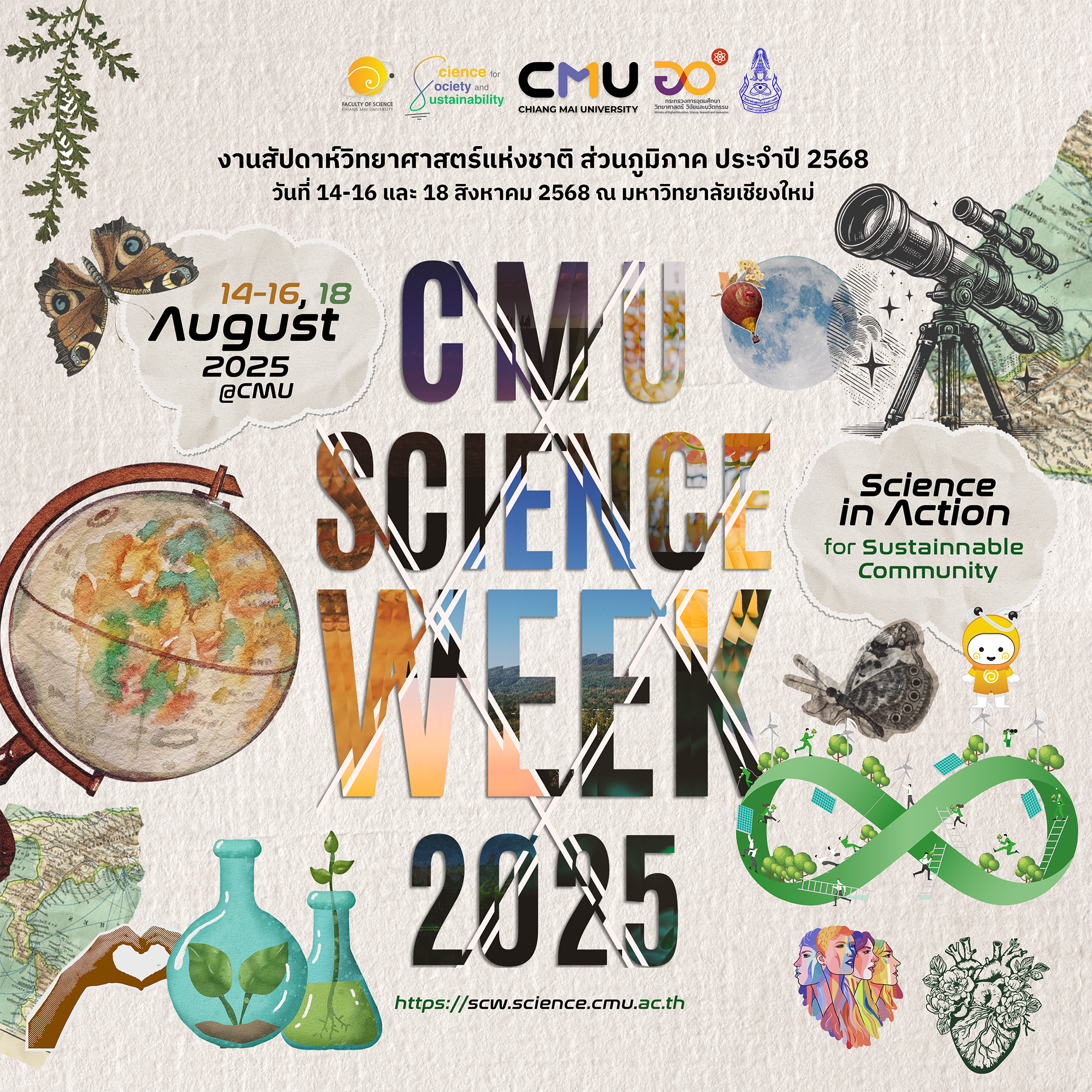 14-16, 18 สิงหาคม 2568 พบกันงานสัปดาห์วิทยาศาสตร์แห่งชาติ ส่วนภูมิภาค ประจำปี 2568 ณ คณะวิทยาศาสตร์ มช.