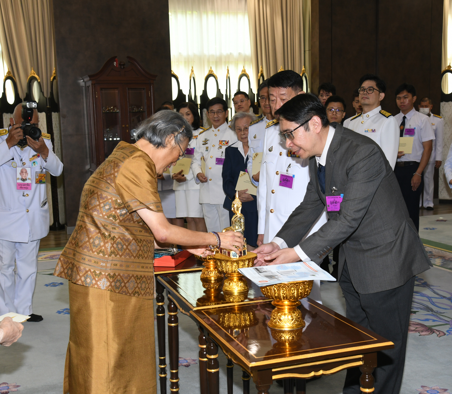 คณบดีคณะวิทยาศาสตร์ มช. ทูลเกล้าฯ ถวายพระพุทธรูปประดับกระจกจืน ผลงานนักวิจัยคณะวิทยาศาสตร์ แด่สมเด็จพระกนิษฐาธิราชเจ้า กรมสมเด็จพระเทพรัตนราชสุดา ฯ สยามบรมราชกุมารี