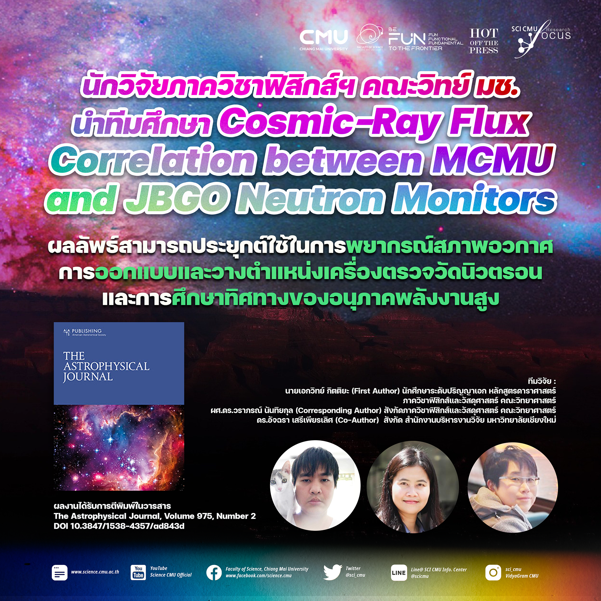 นักวิจัยภาควิชาฟิสิกส์ฯ คณะวิทย์ มช. นำทีมศึกษา Cosmic-Ray Flux Correlation between MCMU and JBGO Neutron Monitors