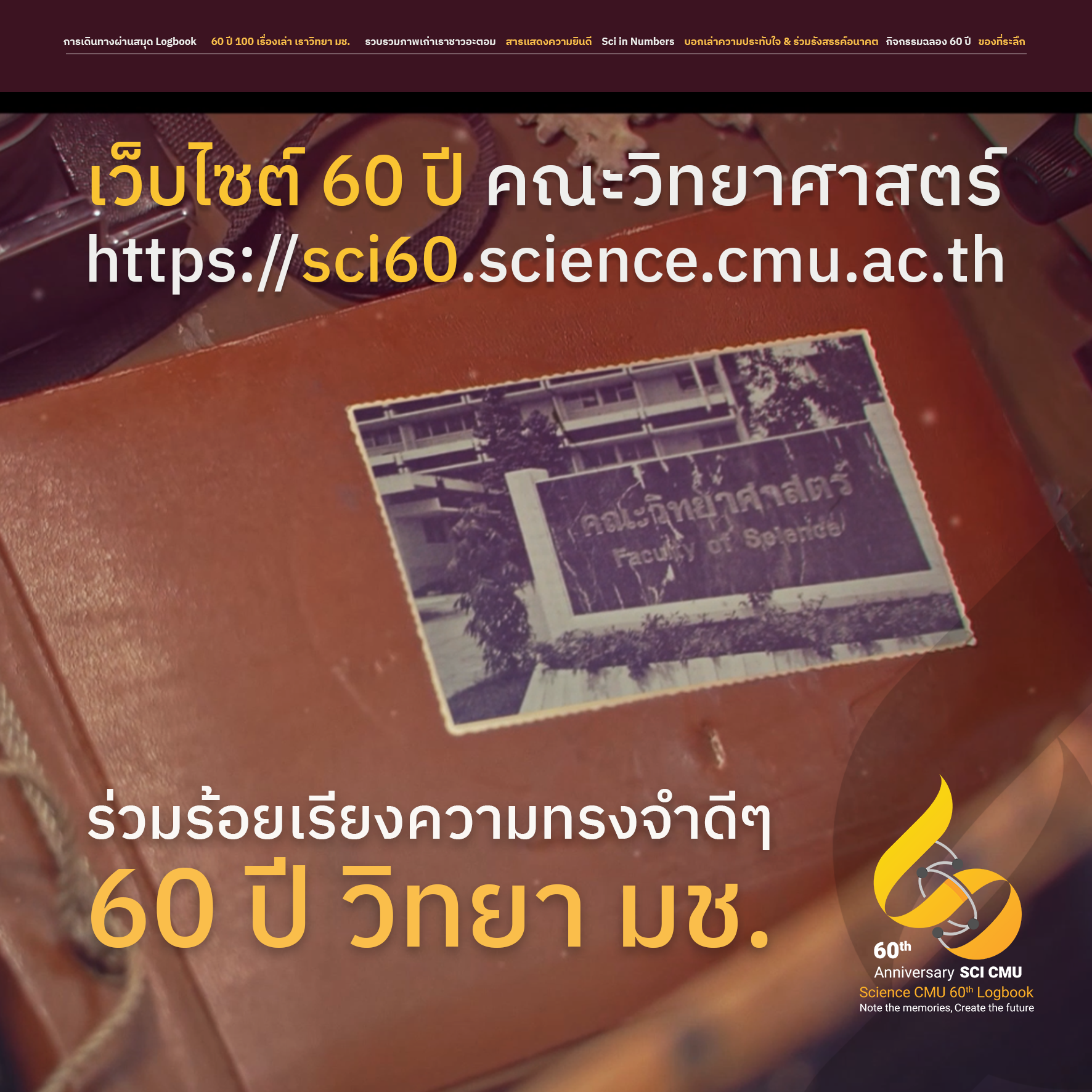 ร่วมร้อยเรียงความทรงจำดีๆ 60 ปี วิทยา มช. ได้ที่เว็บไซต์ 60 ปี คณะวิทยาศาสตร์