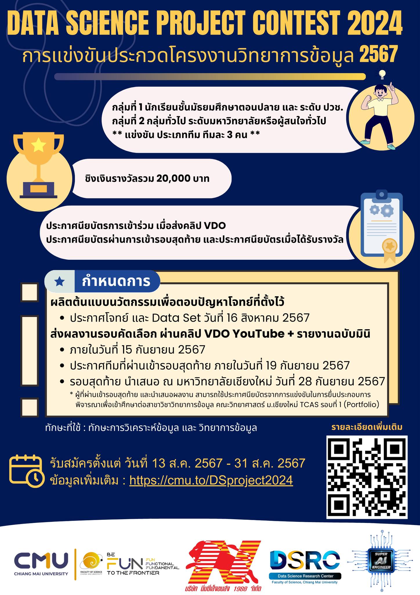 Data Science Project Contest 2024 โปรเจคเด็ดๆ สำหรับน้องๆ นักเรียน ม.ปลาย ปวช. หรือเทียบเท่า นิสิต นักศึกษาระดับอุดมศึกษา หรือผู้สนใจทั่วไป สิทธิพิเศษมากมาย