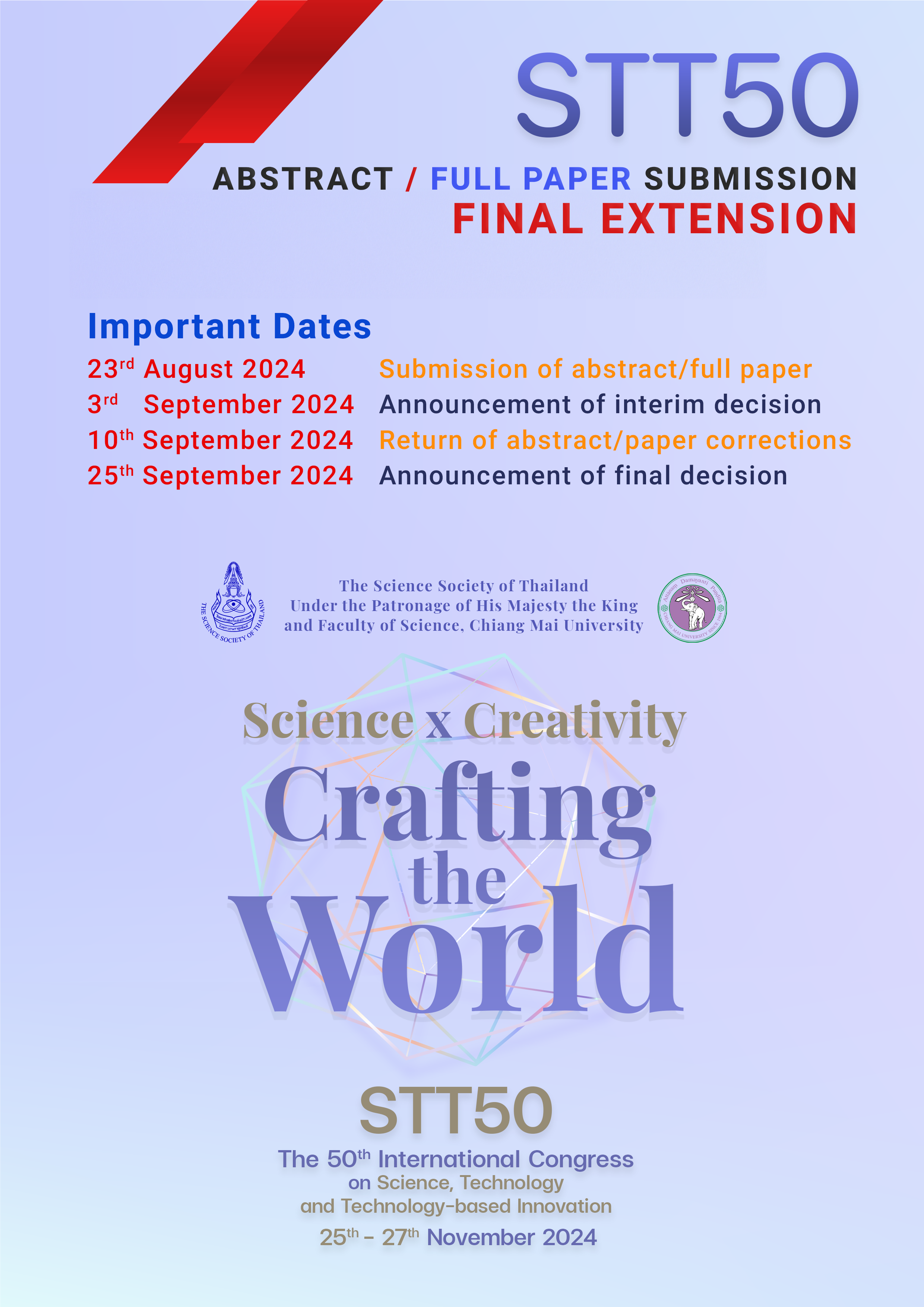 STT50 : Extended Deadline for Submission: August 13, 2024 ขยายเวลาส่งผลงาน: วันที่ 13 สิงหาคม 2567