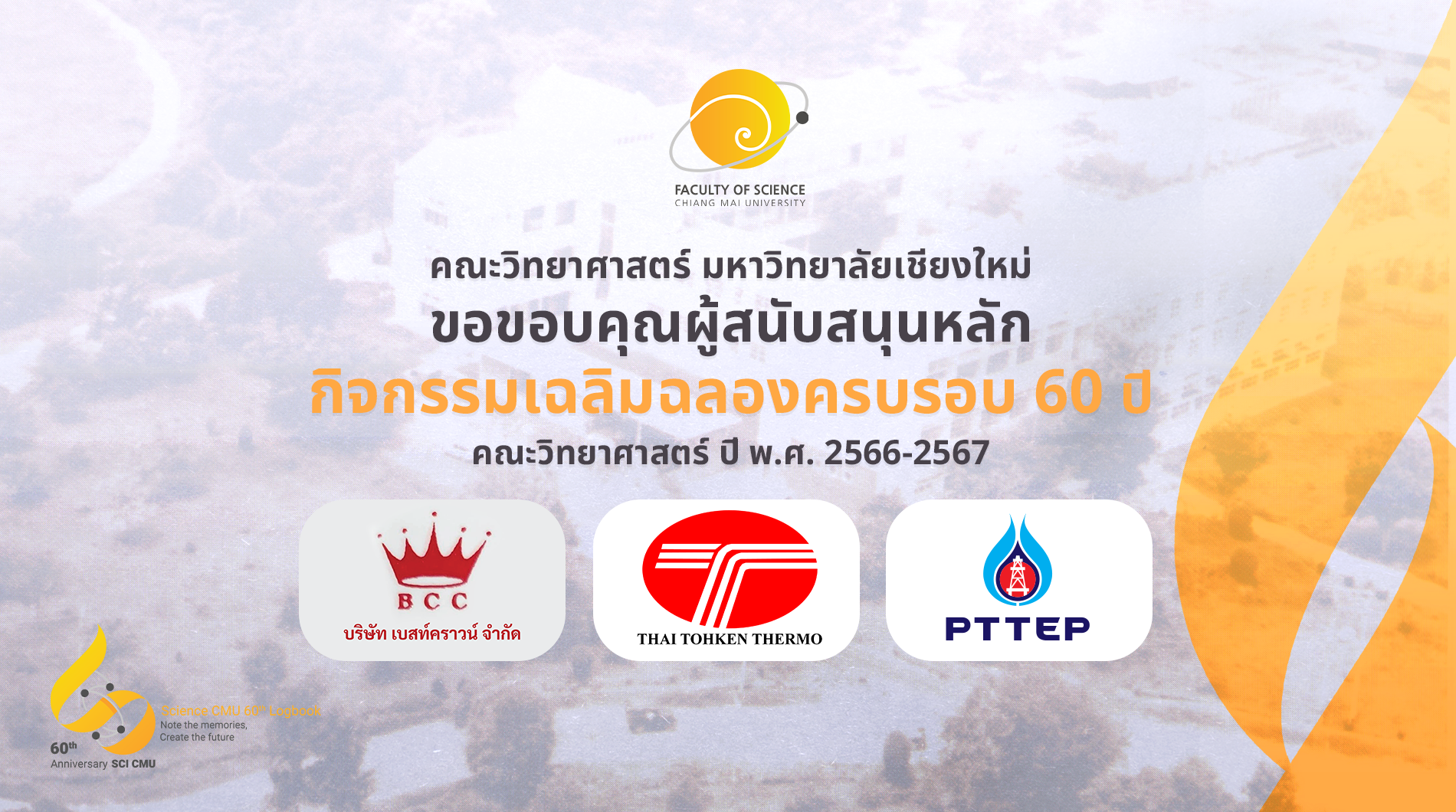 คณะวิทยาศาสตร์ มหาวิทยาลัยเชียงใหม่ ขอขอบคุณผู้สนับสนุนหลัก กิจกรรมเฉลิมฉลองครบรอบ 60 ปี คณะวิทยาศาสตร์ ปี พ.ศ. 2566-2567
