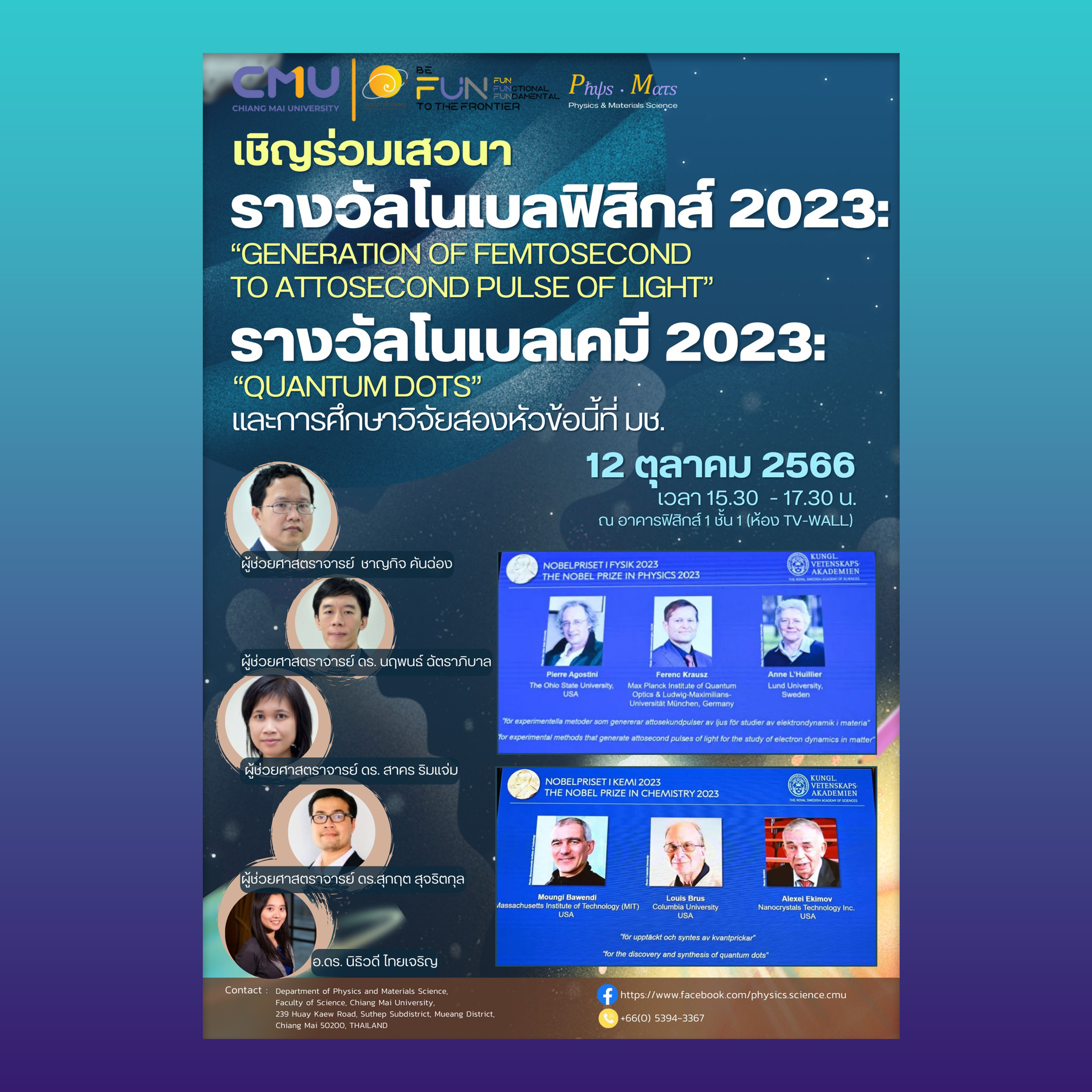 ขอเชิญร่วมเสวนารางวัลโนเบลฟิสิกส์ 2023