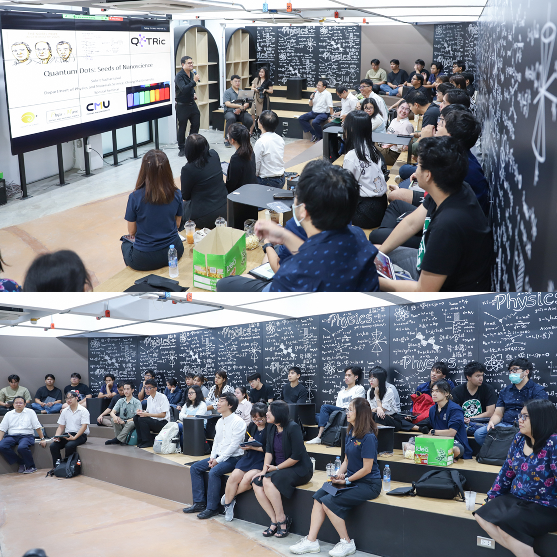 บรรยากาศการเสวนารางวัลโนเบลฟิสิกส์ - รางวัลโนเบลเคมี 2023 ที่ภาควิชาฟิสิกส์ฯ วิทยา มช.