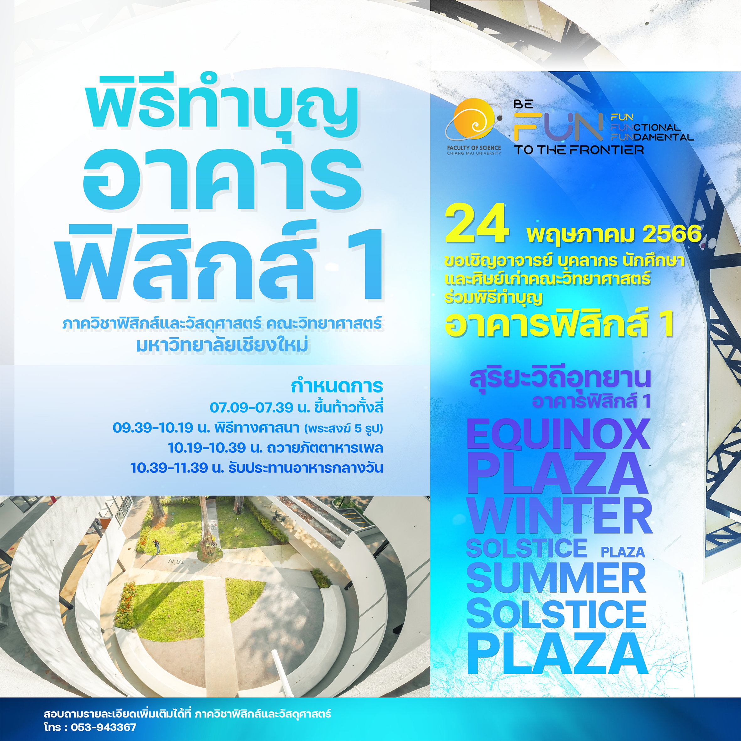 24 พฤษภาคม 2566 ขอเชิญร่วมพิธีทำบุญอาคารฟิสิกส์ 1