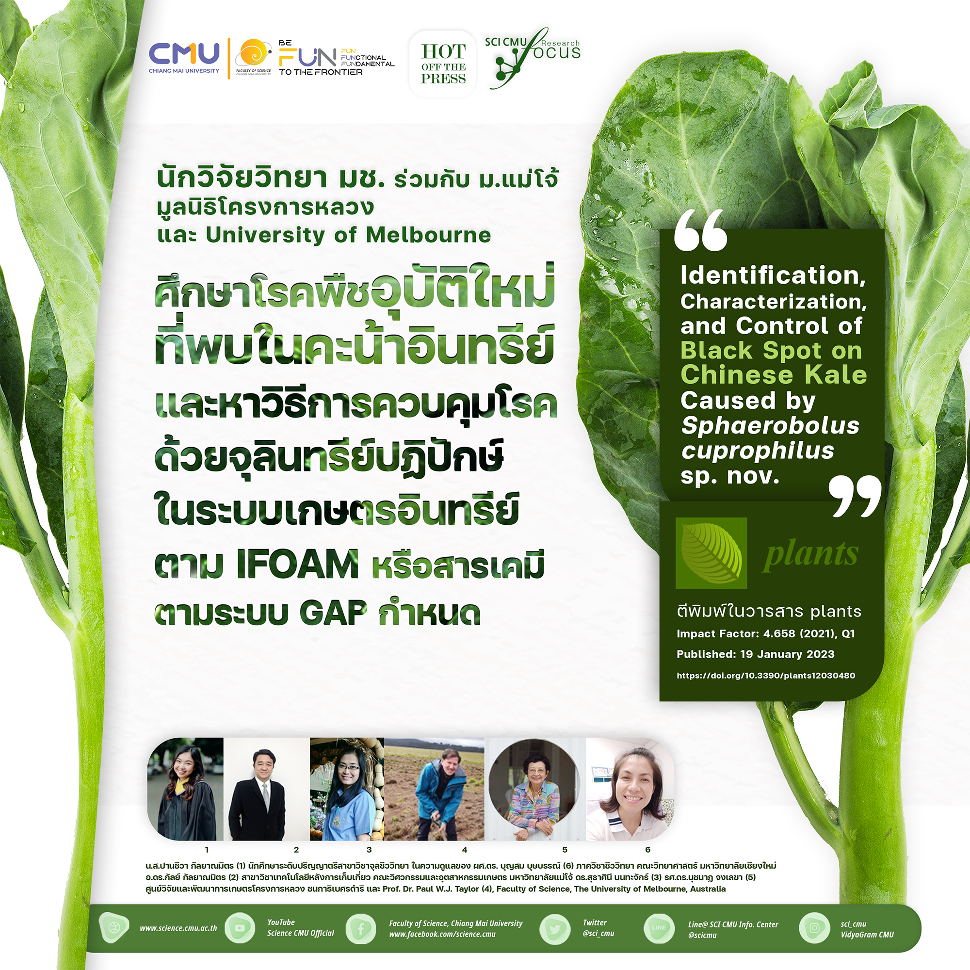 นักวิจัยวิทยา มช. ร่วมกับนักวิจัยไทย และออสเตรเลีย ศึกษาโรคพืชอุบัติใหม่ในคะน้าที่ปลูกในระบบเกษตรอินทรีย์ และหาวิธีการควบคุมที่ปลอดภัย