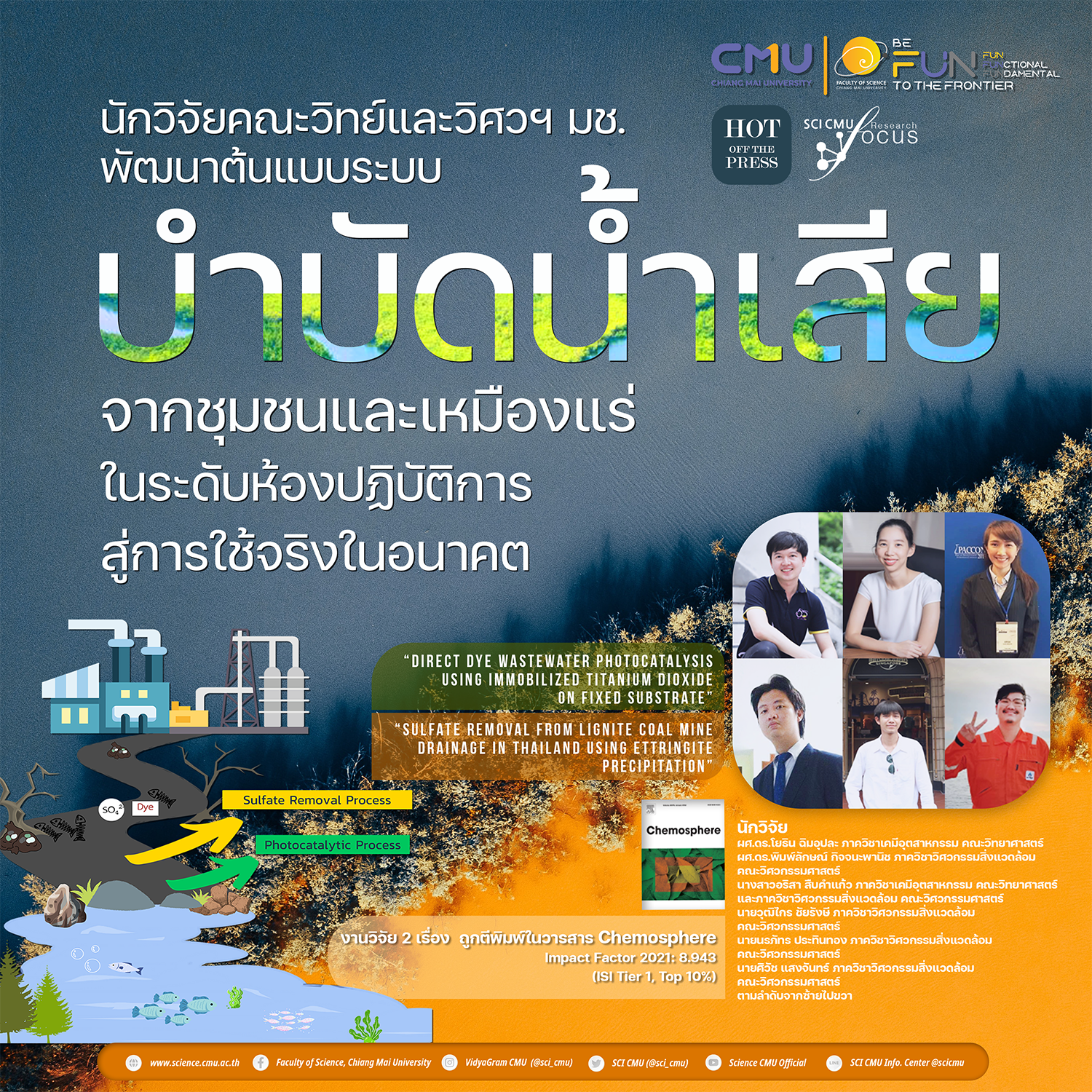 นักวิจัยคณะวิทย์และวิศวฯ มช. พัฒนาต้นแบบระบบบำบัดน้ำเสียจากชุมชนและเหมืองแร่ในระดับห้องปฏิบัติการ สู่การต่อยอดใช้จริงในอนาคต